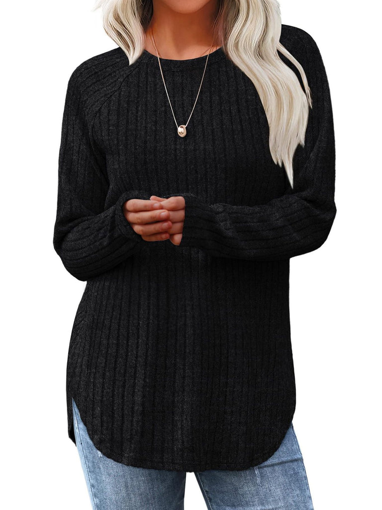 Loose Crew Neck Long Sleeve Plain Fashion Mid-Long Blouses