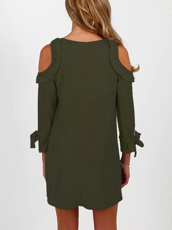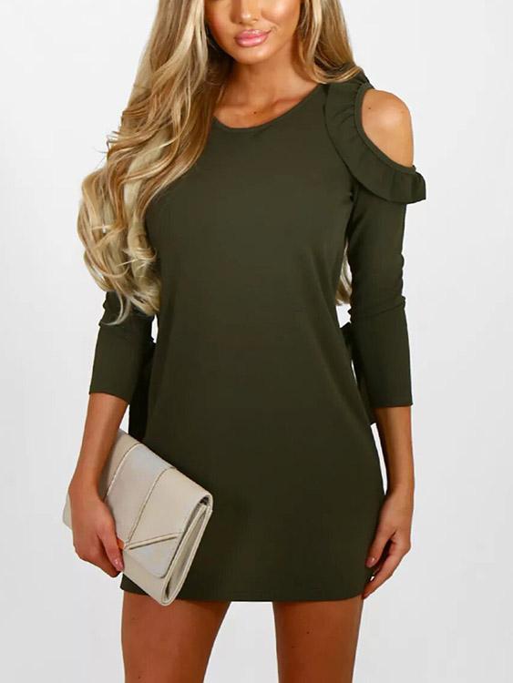 Army Green Round Neck Cold Shoulder 3/4 Length Sleeve Mini Dress