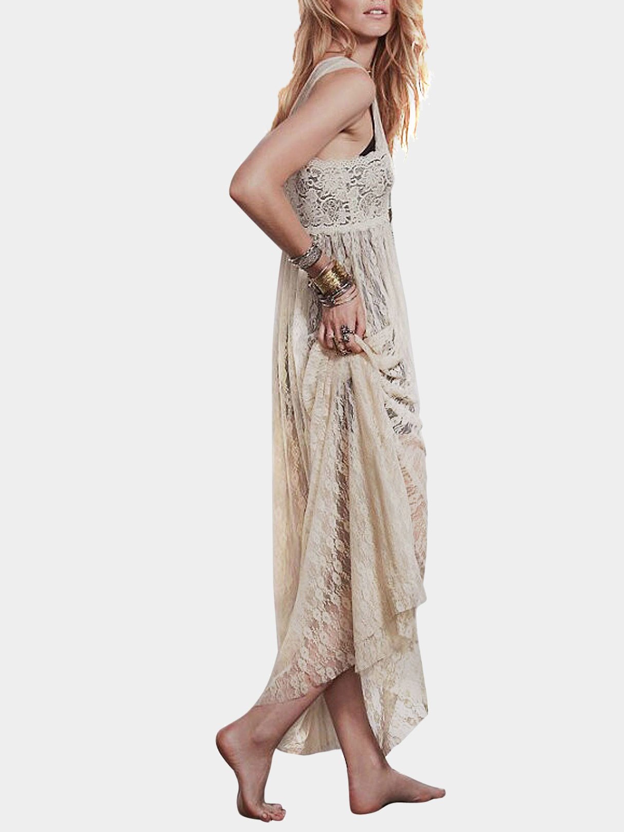 Beige Lace Maxi Dress - Beige / S is backordered and will ship as soon as it is back in stock.