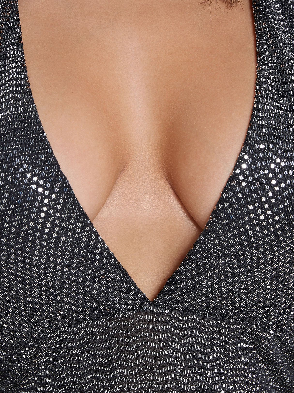 Black Deep V Neck Long Sleeve Wave Sequins Embellished Dresses