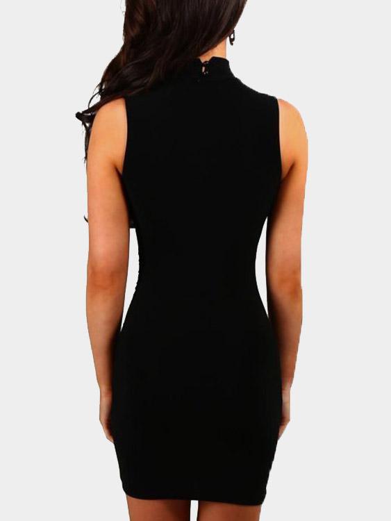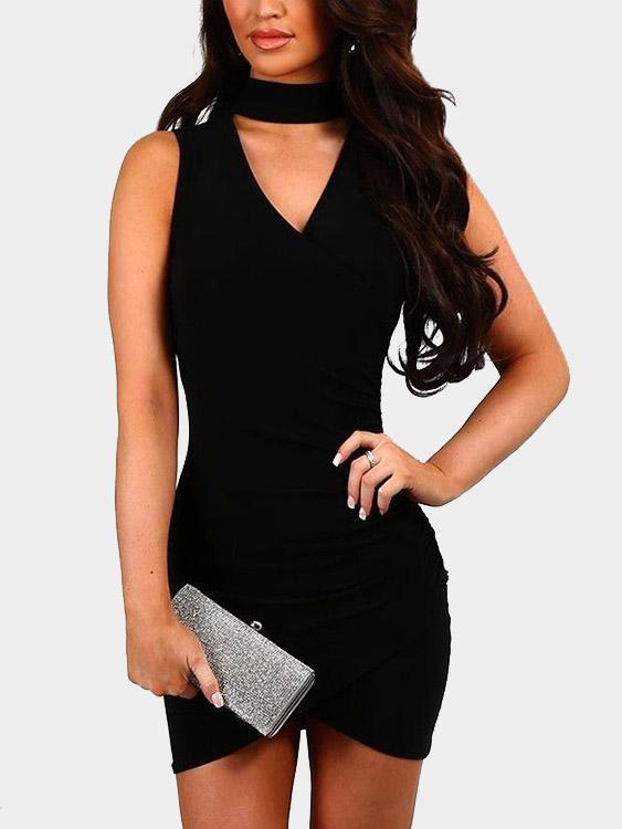 Material:Polyester,OtherNeckline:V-Neck,Deep V NeckSleeves:SleevelessStyle:Party Style,Sexy Style,Little Black Dress,Formal StyleDetail:Crossed Front Design,Cut OutLength:MiniFit:Bodycon FitOccasion:Cocktail