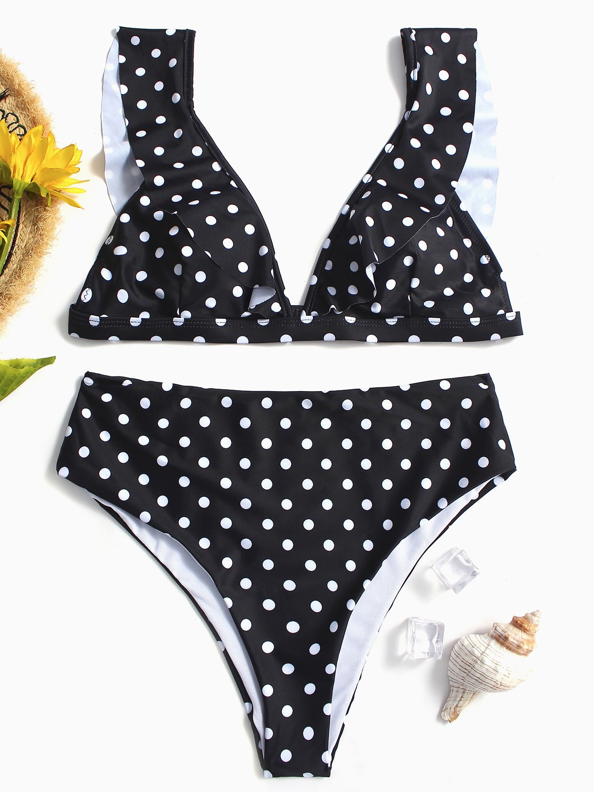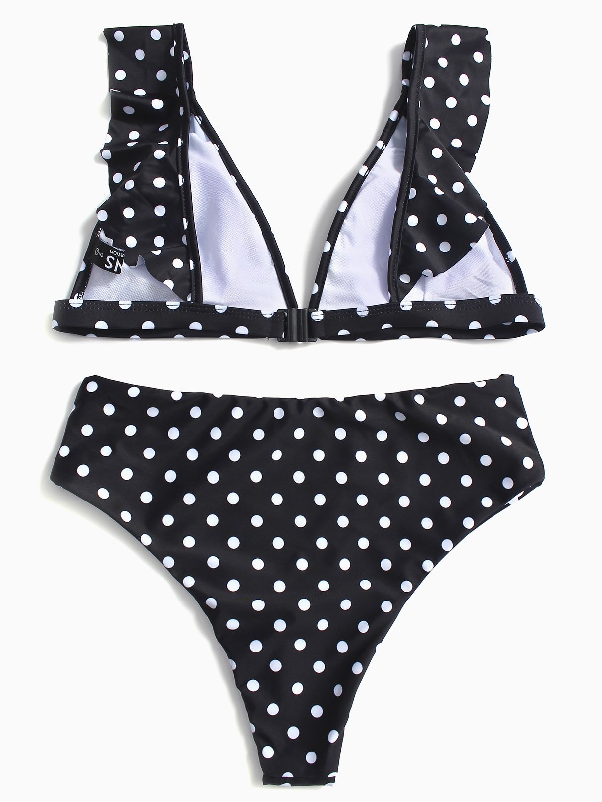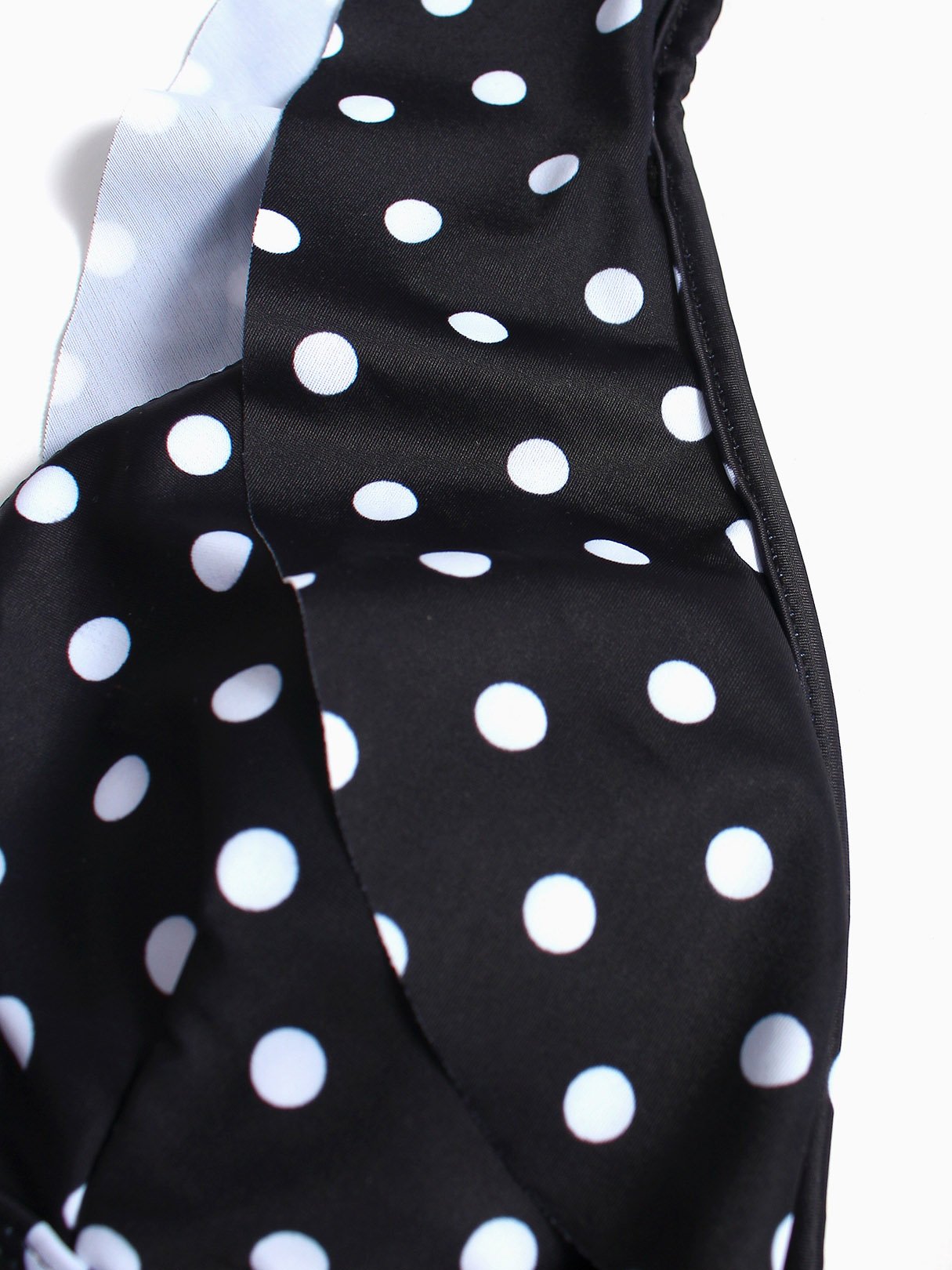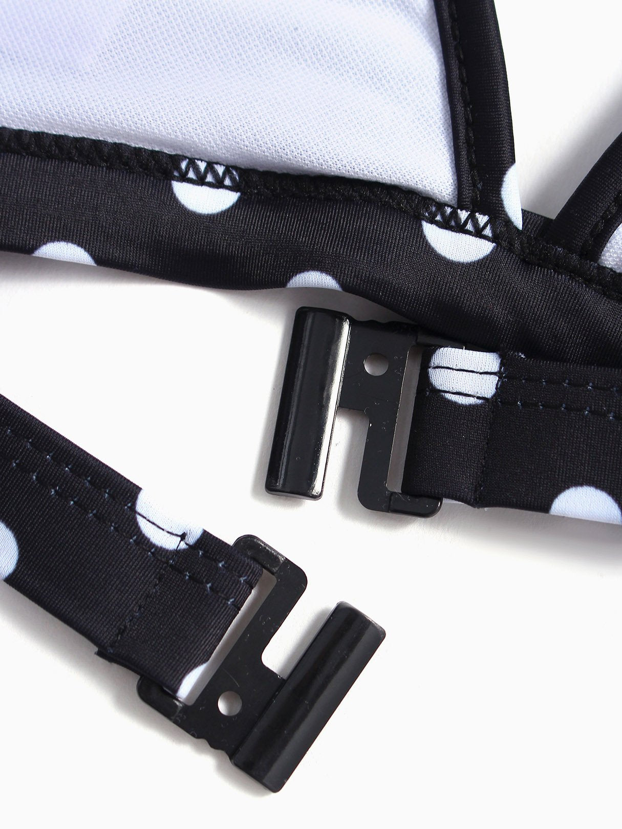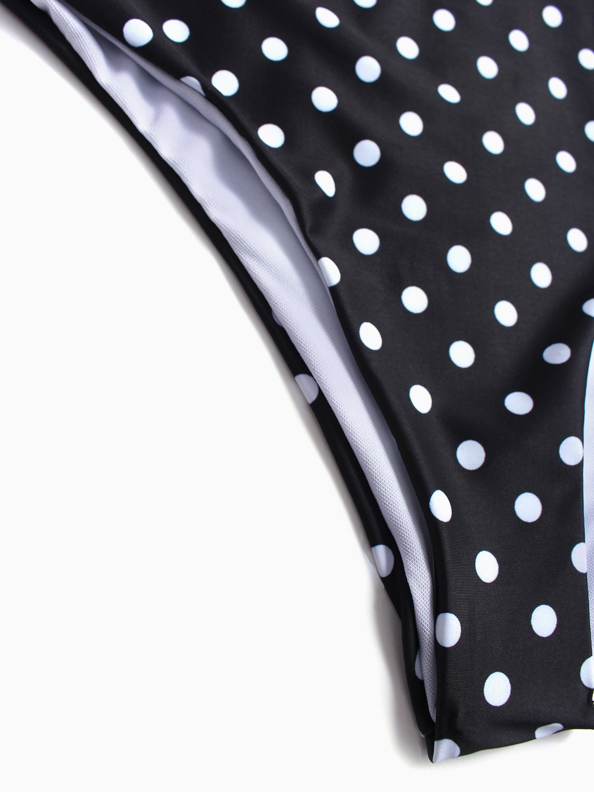 Black Deep V-Neck Sleeveless Polka Dot Two Piece Bikinis
