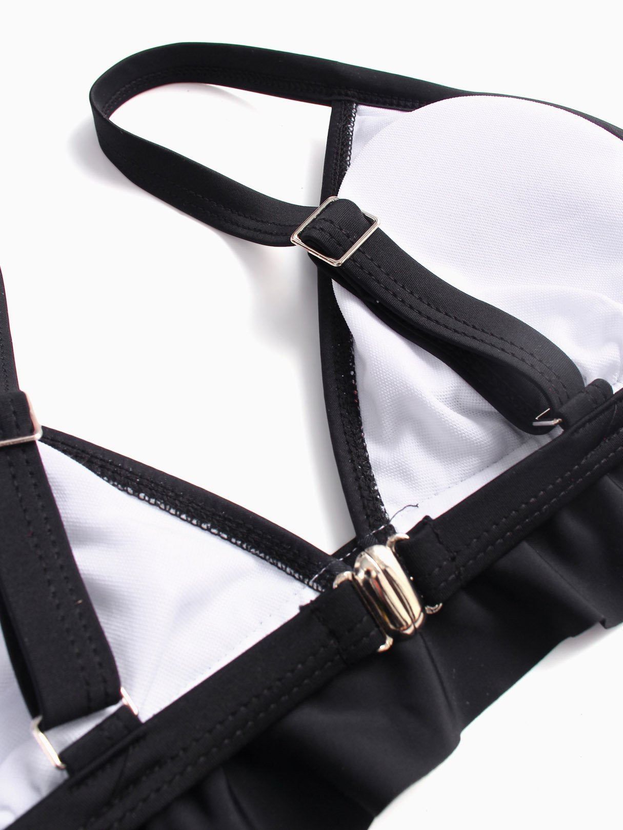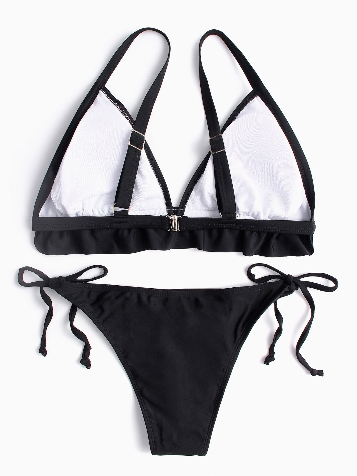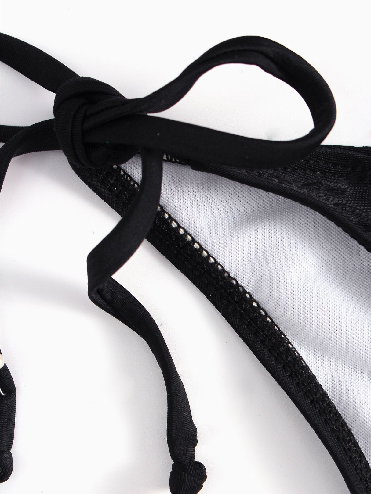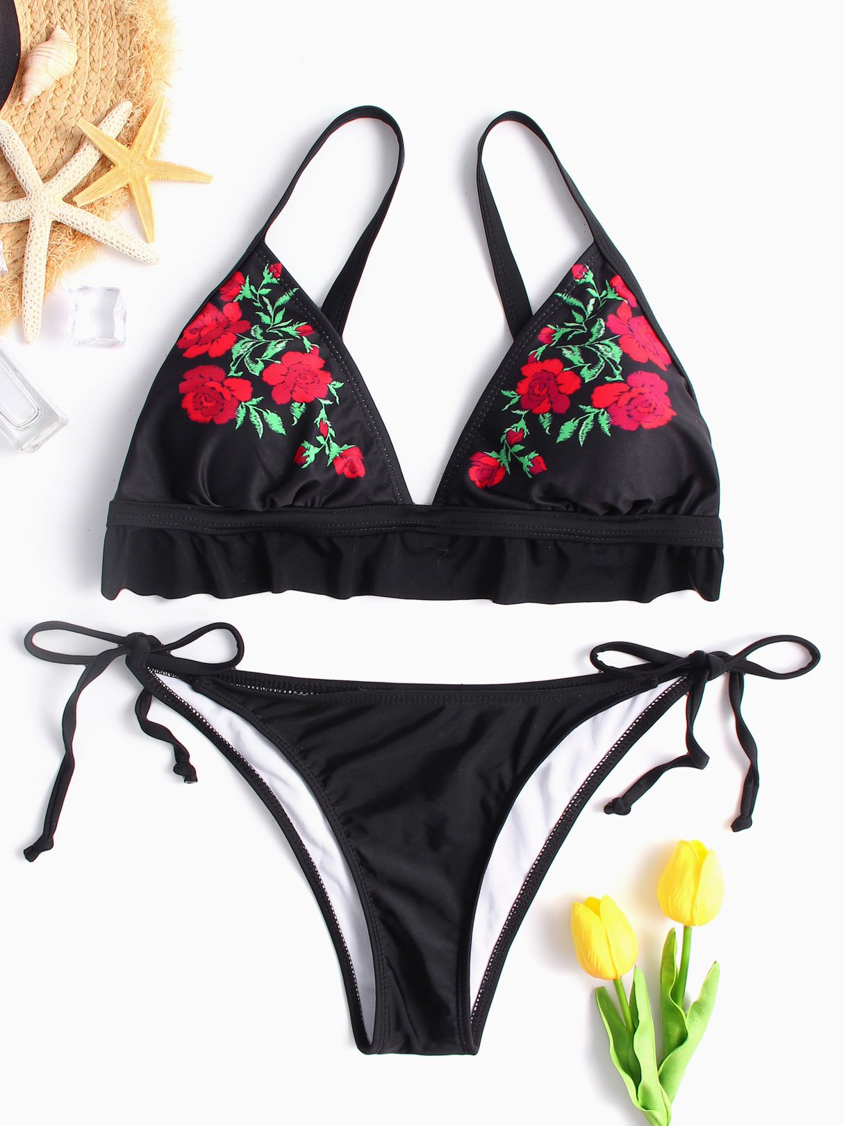 Black Embroidered Spaghetti Strap Two Piece Bikinis