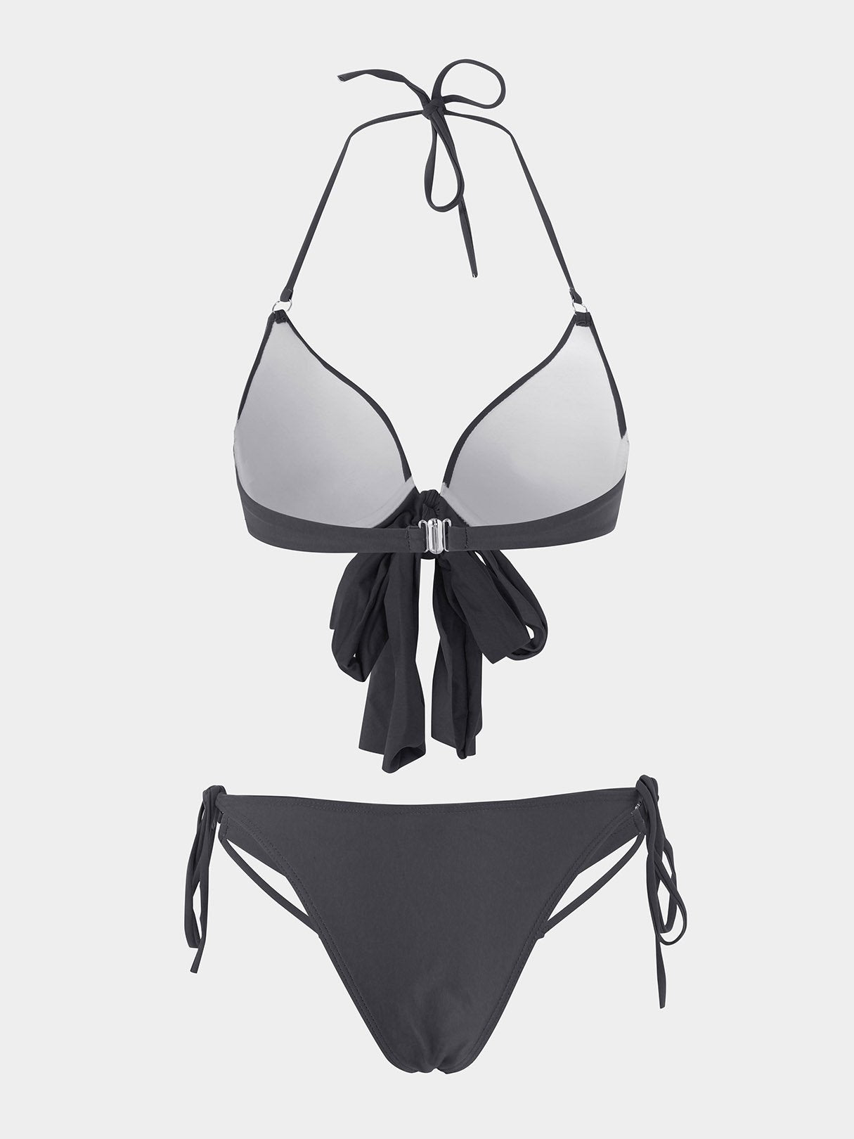Black Halter Sleeveless Plain Crossed Front Tie-Up Bikini Set Swimwear