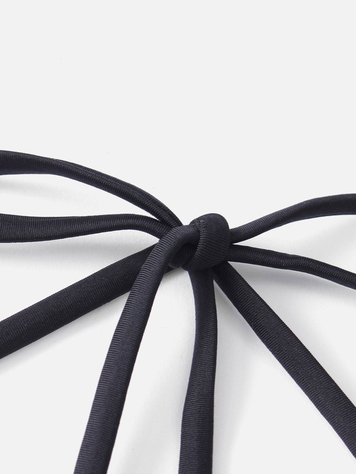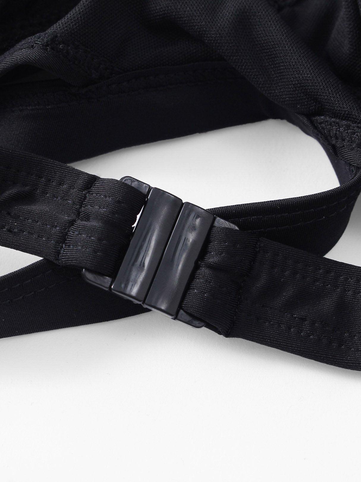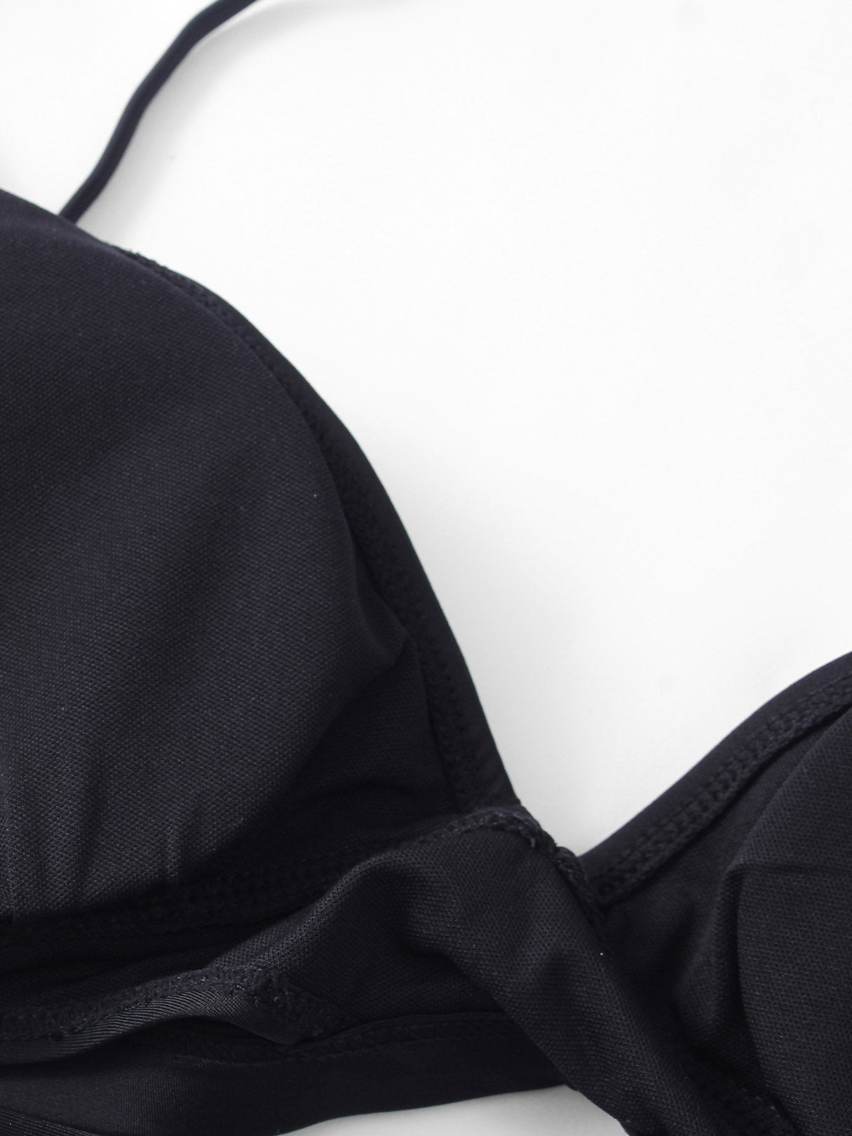 Black Halter Sleeveless Plain Hollow Bikini Set