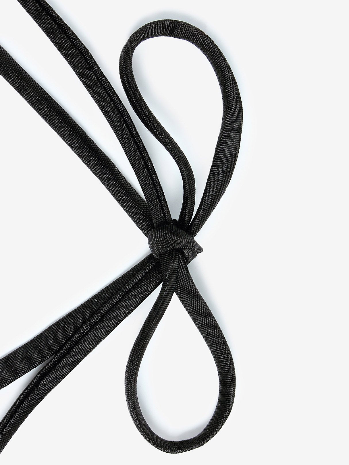 Black Halter V-Neck Sleeveless Plain Backless Hollow Lace-Up Spaghetti Strap Bikinis