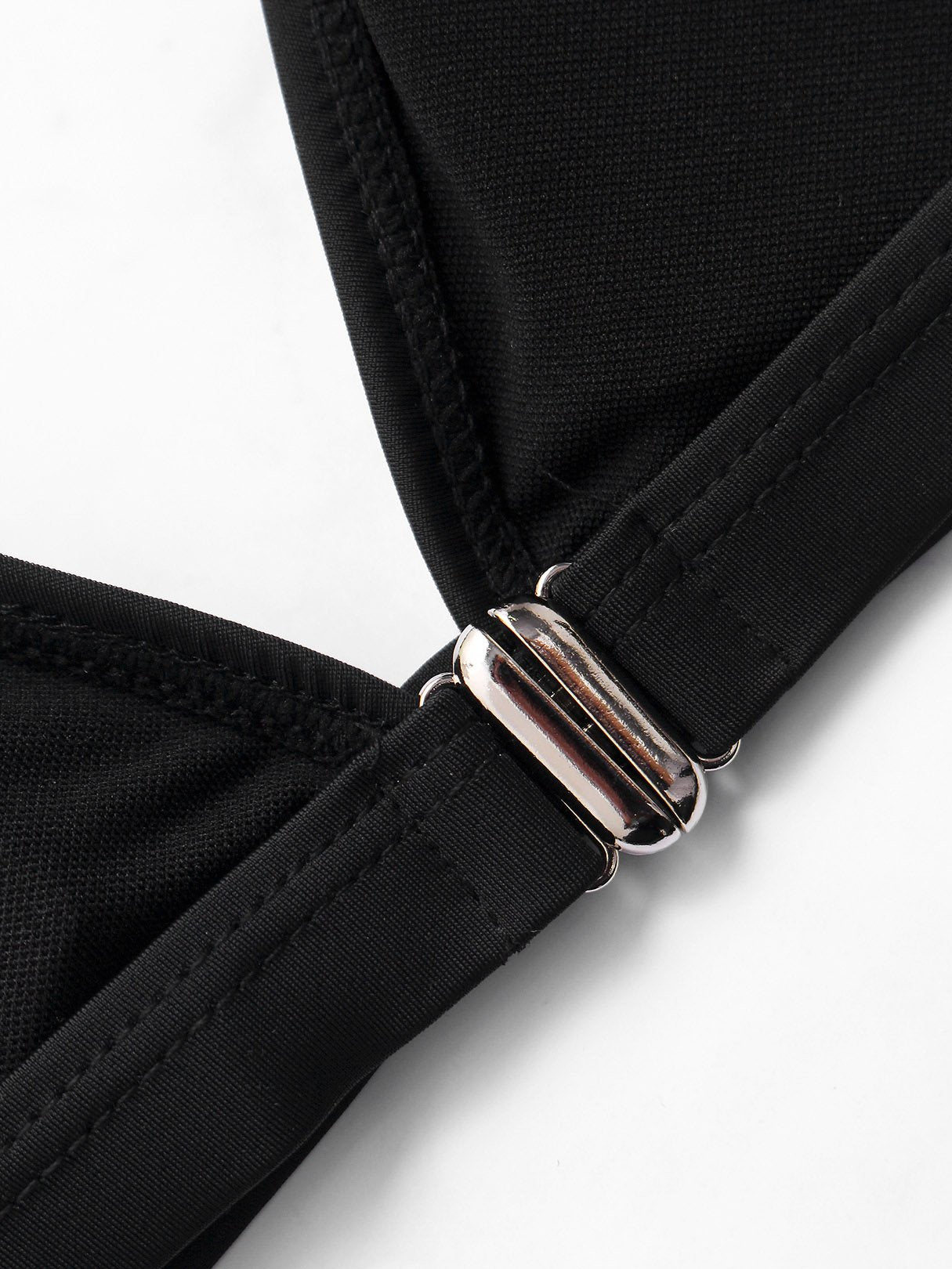 Black Halter V-Neck Sleeveless Plain Bikinis