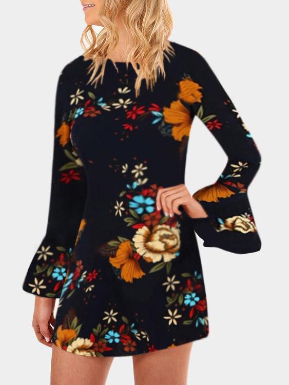 Material:PolyesterNeckline:Round NeckSeason:Spring,Autumn,WinterSleeves:Long SleevesPattern:Floral PrintStyle:Casual Style,Sexy StyleLength:MiniFit:Regular FitOccasion:Homecoming