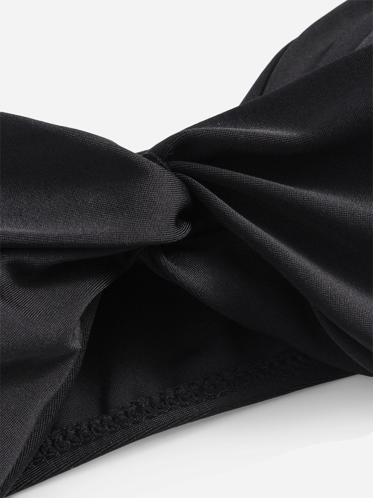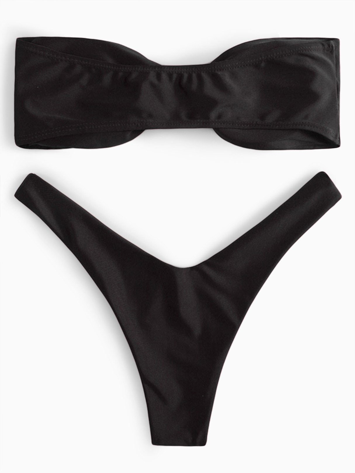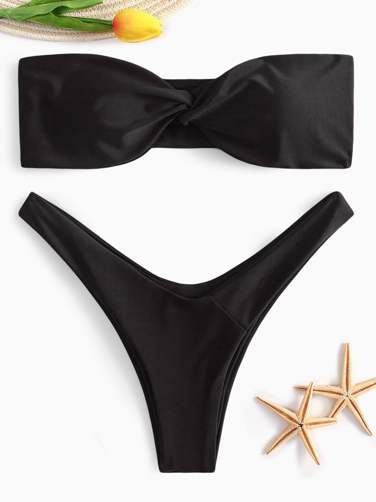 Black Off The Shoulder Sleeveless Crossed Front Bodycon 2 Piece Bikinis