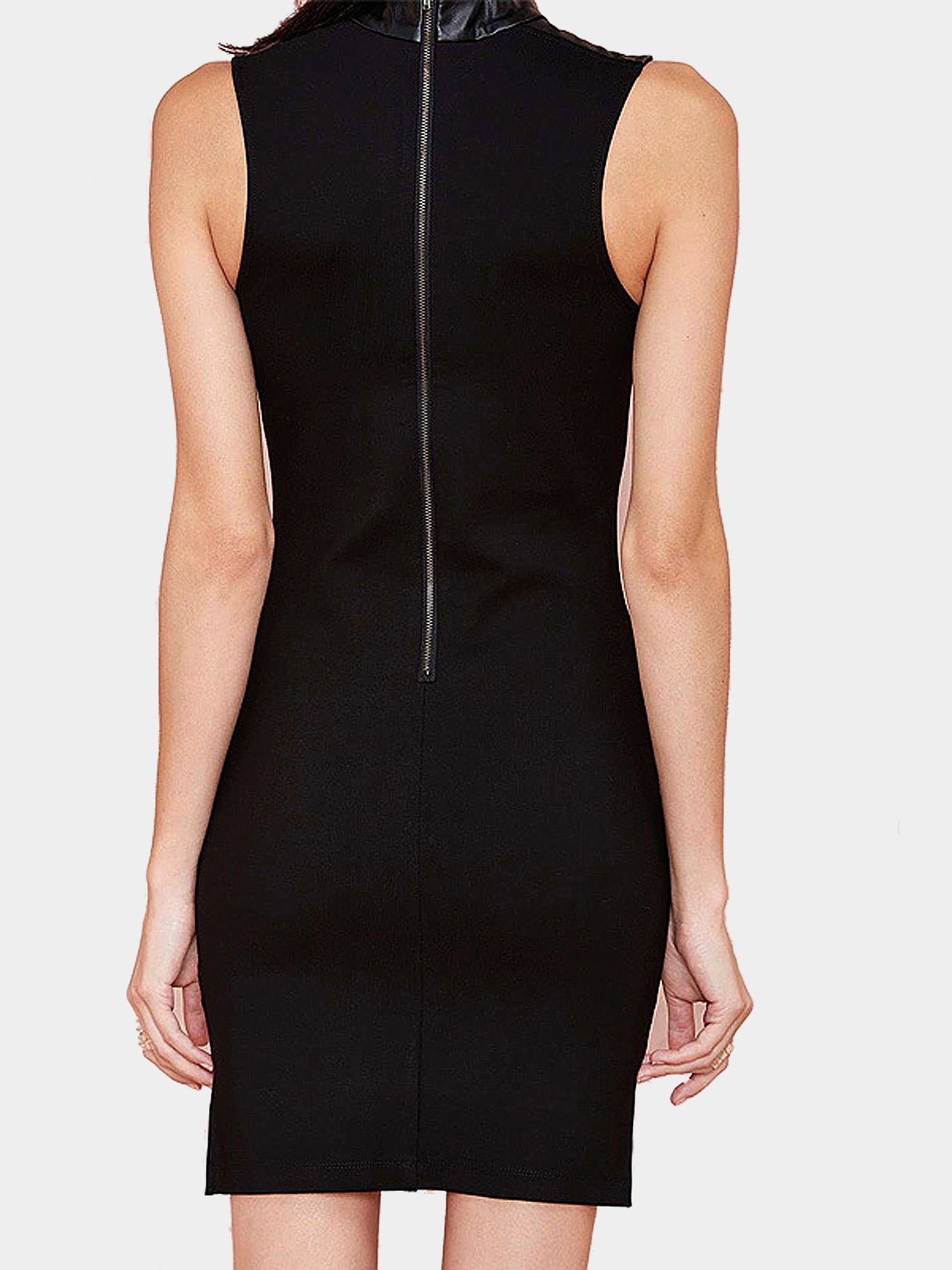 Black Perkins Collar Sleeveless Zip Back Bodycon Hem Mini Dress