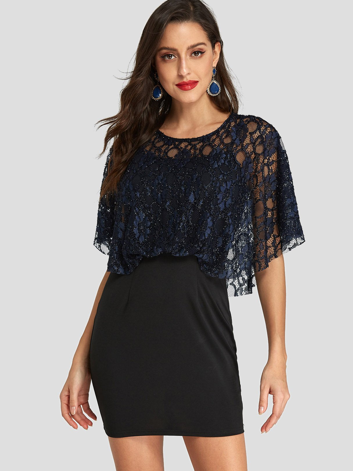 Material:Polyester,NylonNeckline:Round NeckSeason:Spring,Summer,AutumnSleeves:Half SleevesPattern:PlainStyle:Party StyleDetail:Hollow DesignHem Design:Bodycon HemType:BodyconLength:MiniFit:Bodycon FitSleeves Type:Dolman SleeveOccasion:Party,Cocktail