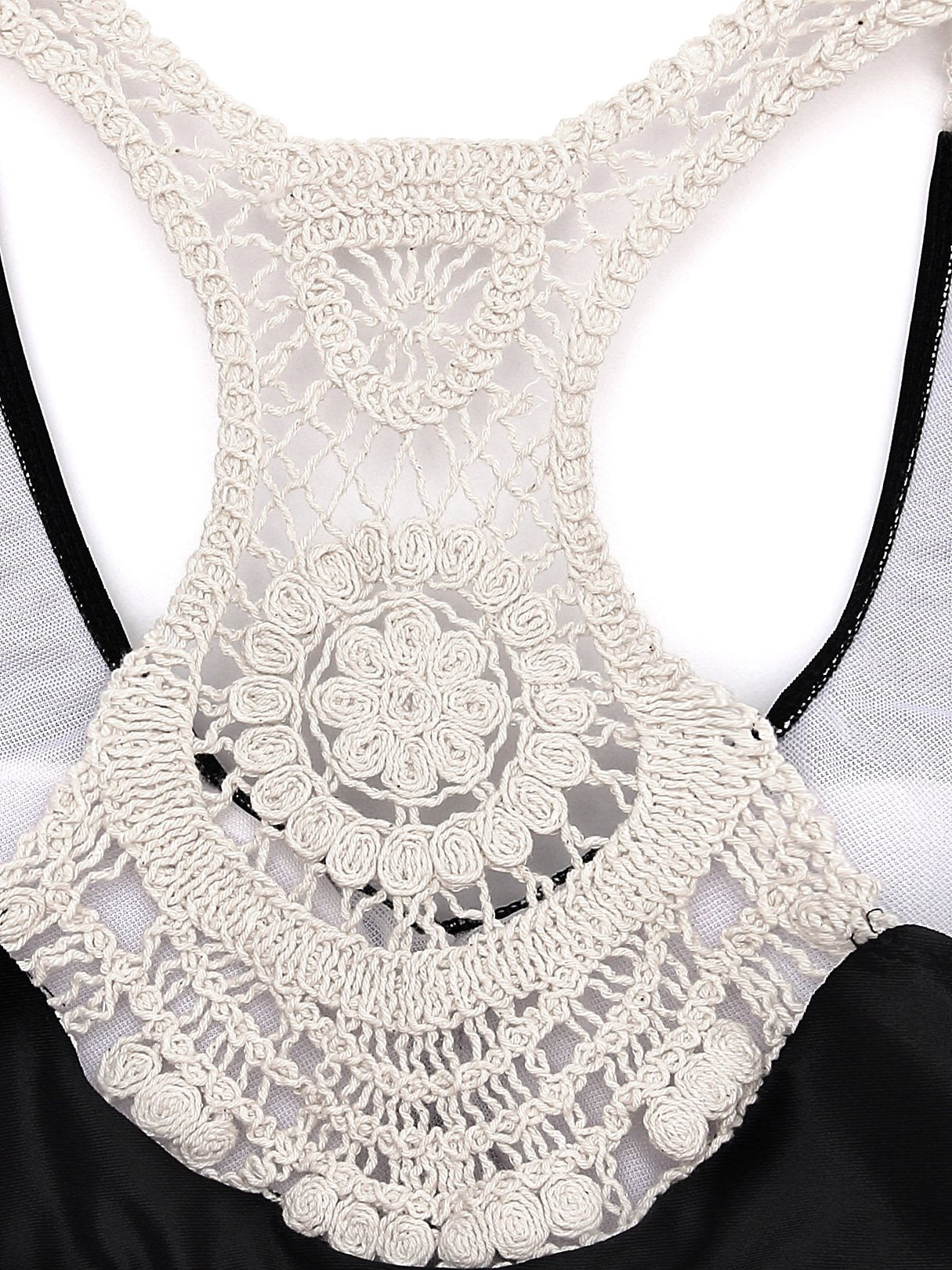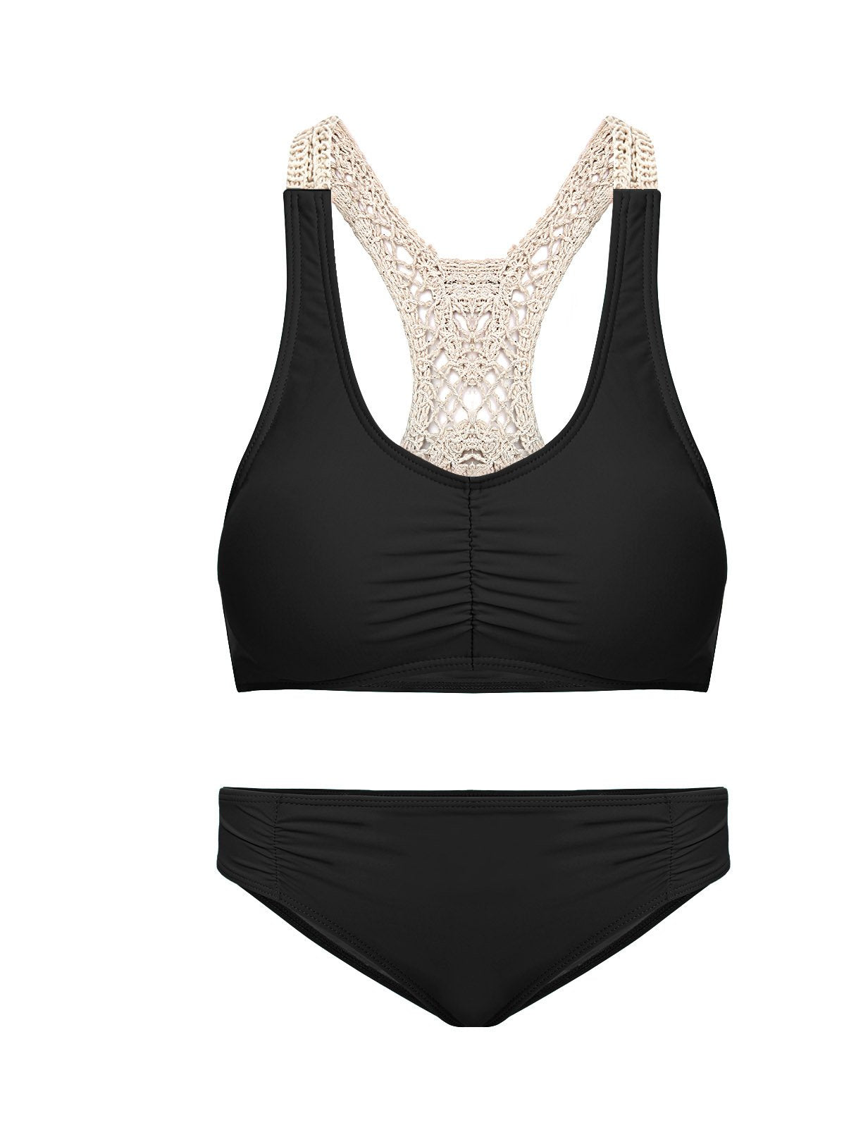 Black Round Neck Sleeveless Lace Two Piece Bikinis