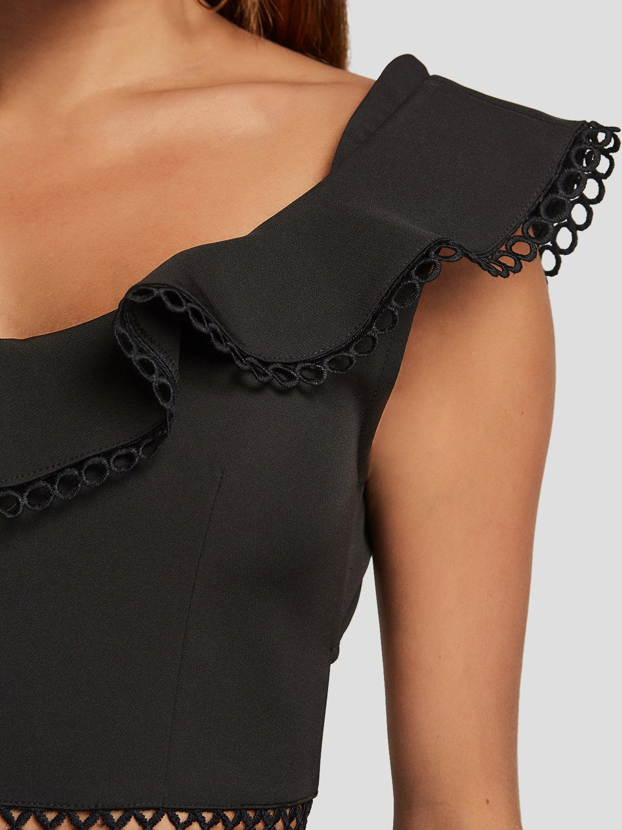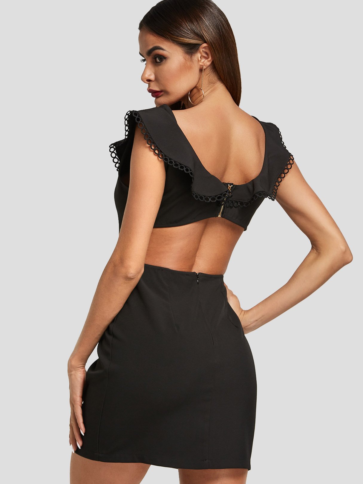 Black Scoop Neck Sleeveless Plain Zip Back Backless Hollow Cut Out Mini Dresses