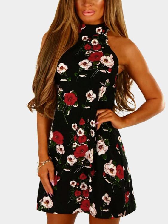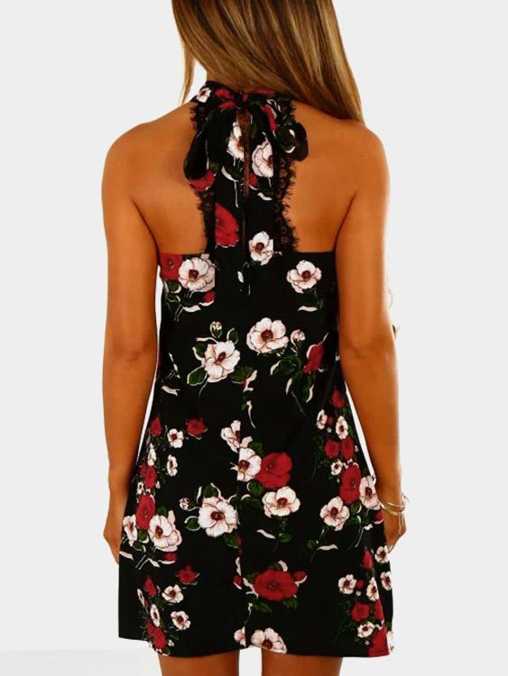 Material:PolyesterSeason:Spring,SummerSleeves:SleevelessPattern:Floral PrintStyle:Casual StyleDetail:Lace,Zip Back DesignLength:MiniFit:Regular Fit