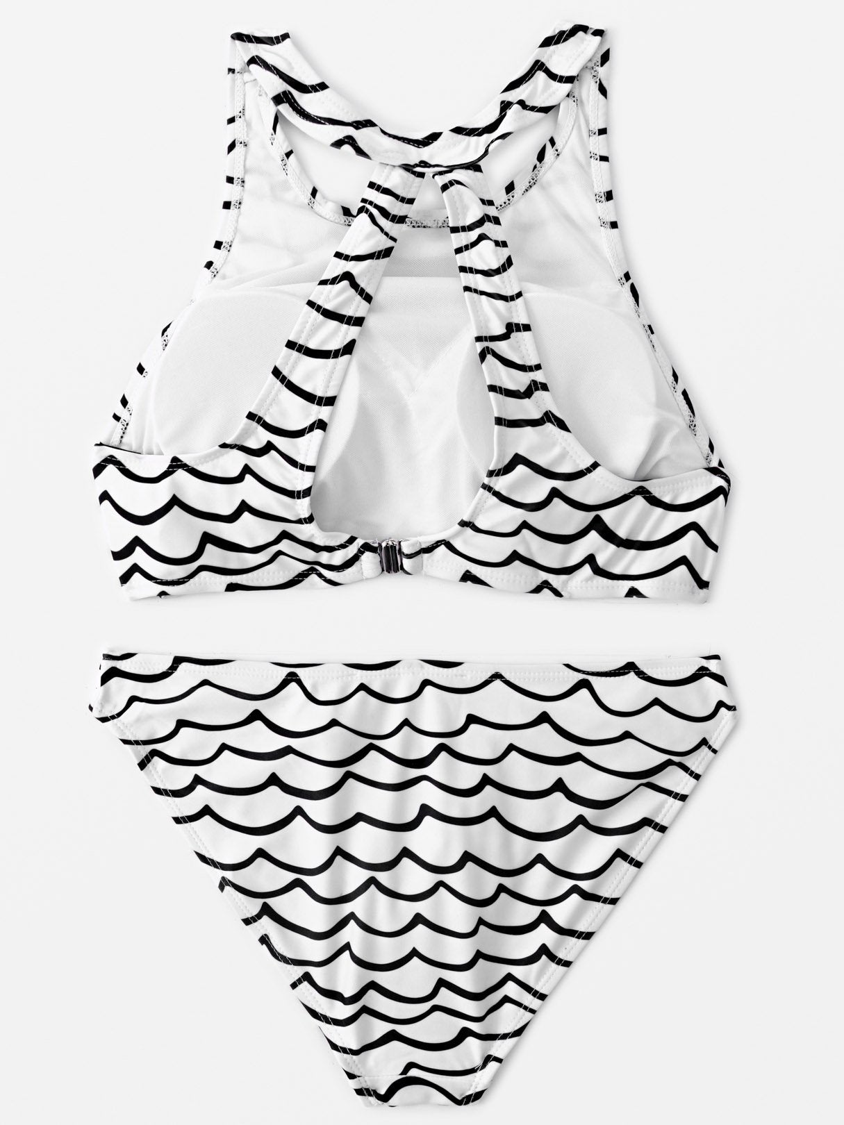 Black Sleeveless Printed Cut Out Wireless Two Piece Bikinis