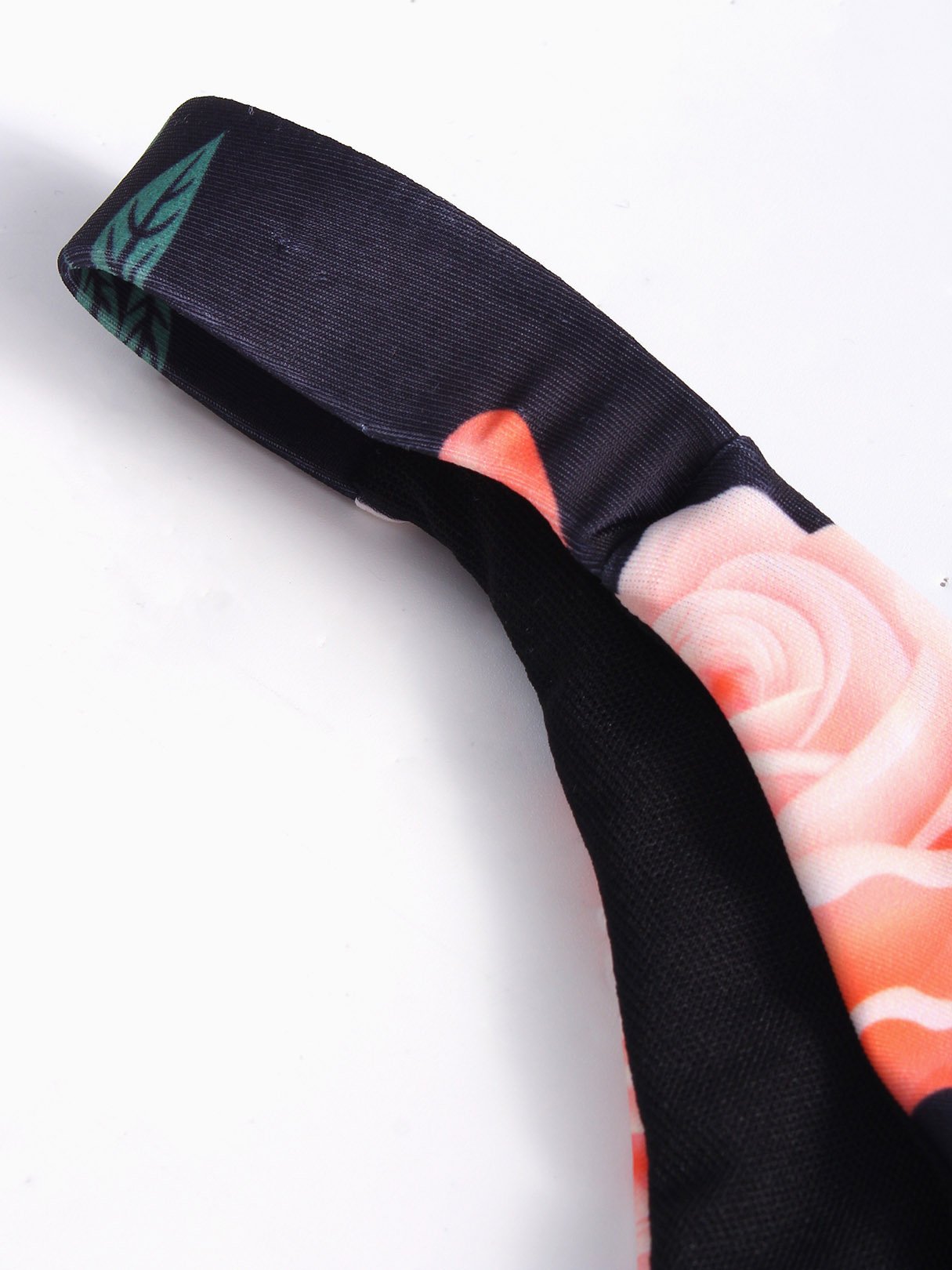 Black Strapless Sleeveless Floral Print Bowknot 2 Piece Bikinis