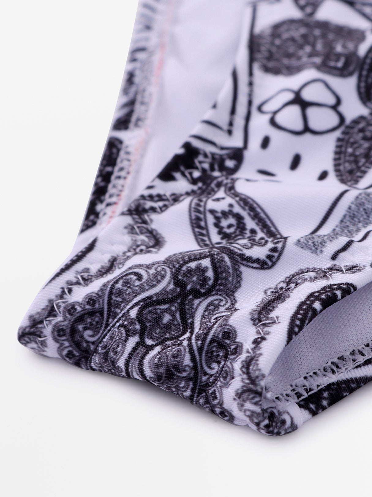 Black Tube Top Sleeveless Printed Tie-Up Two Piece Bikinis