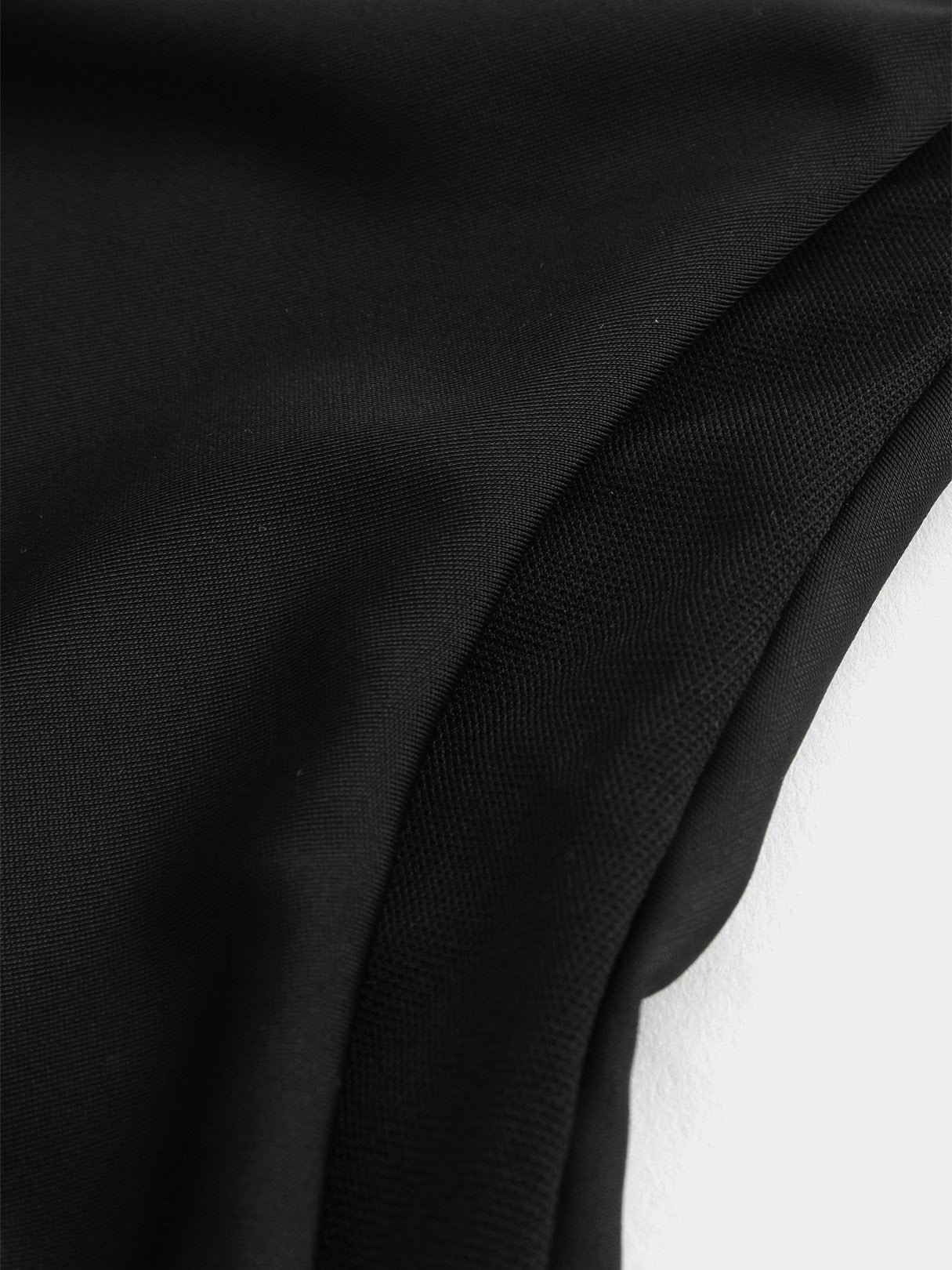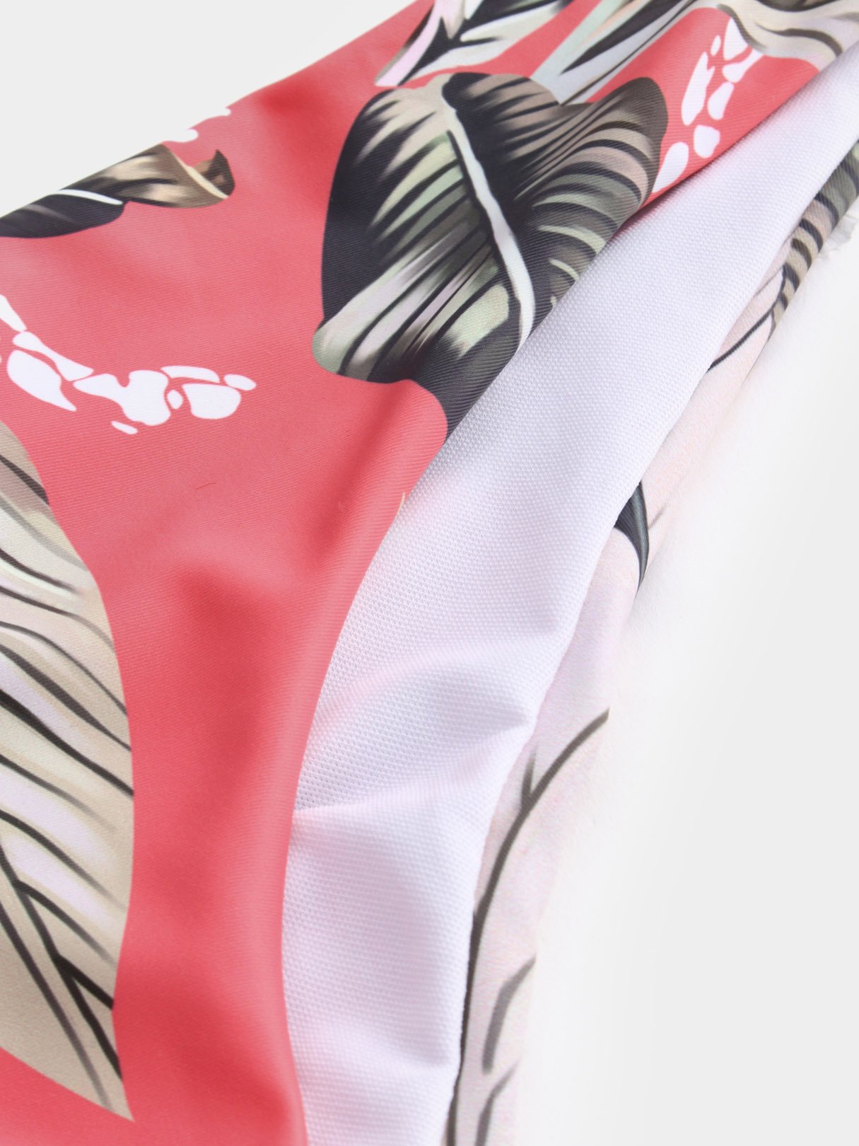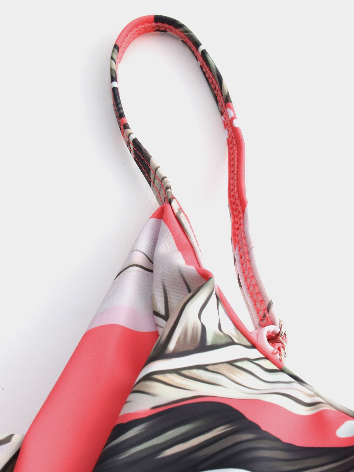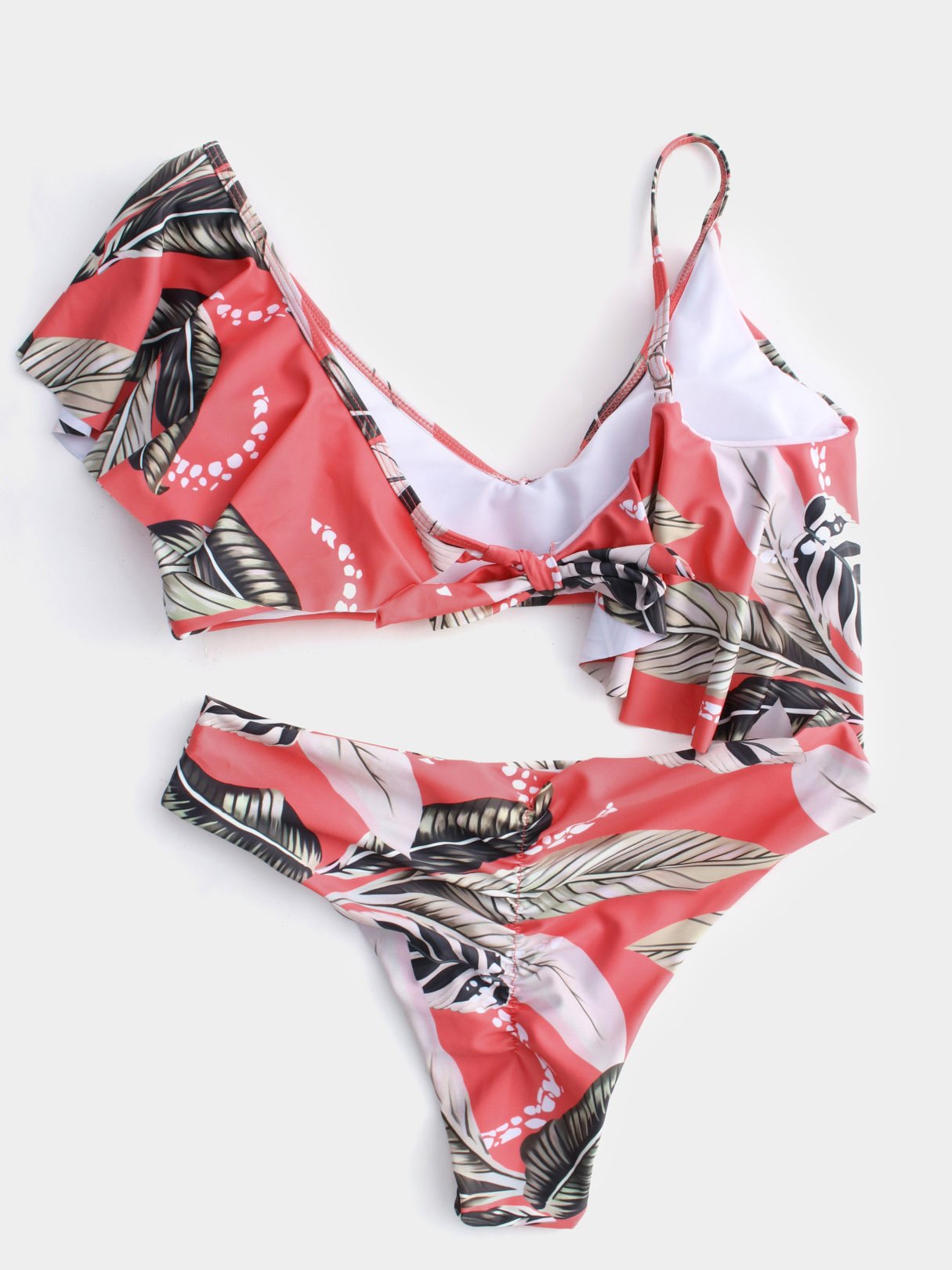 Black V-Neck Asymmetrical Sleeveless Floral Print Tie-Up Ruffle Trim Bikini Set Swimwear