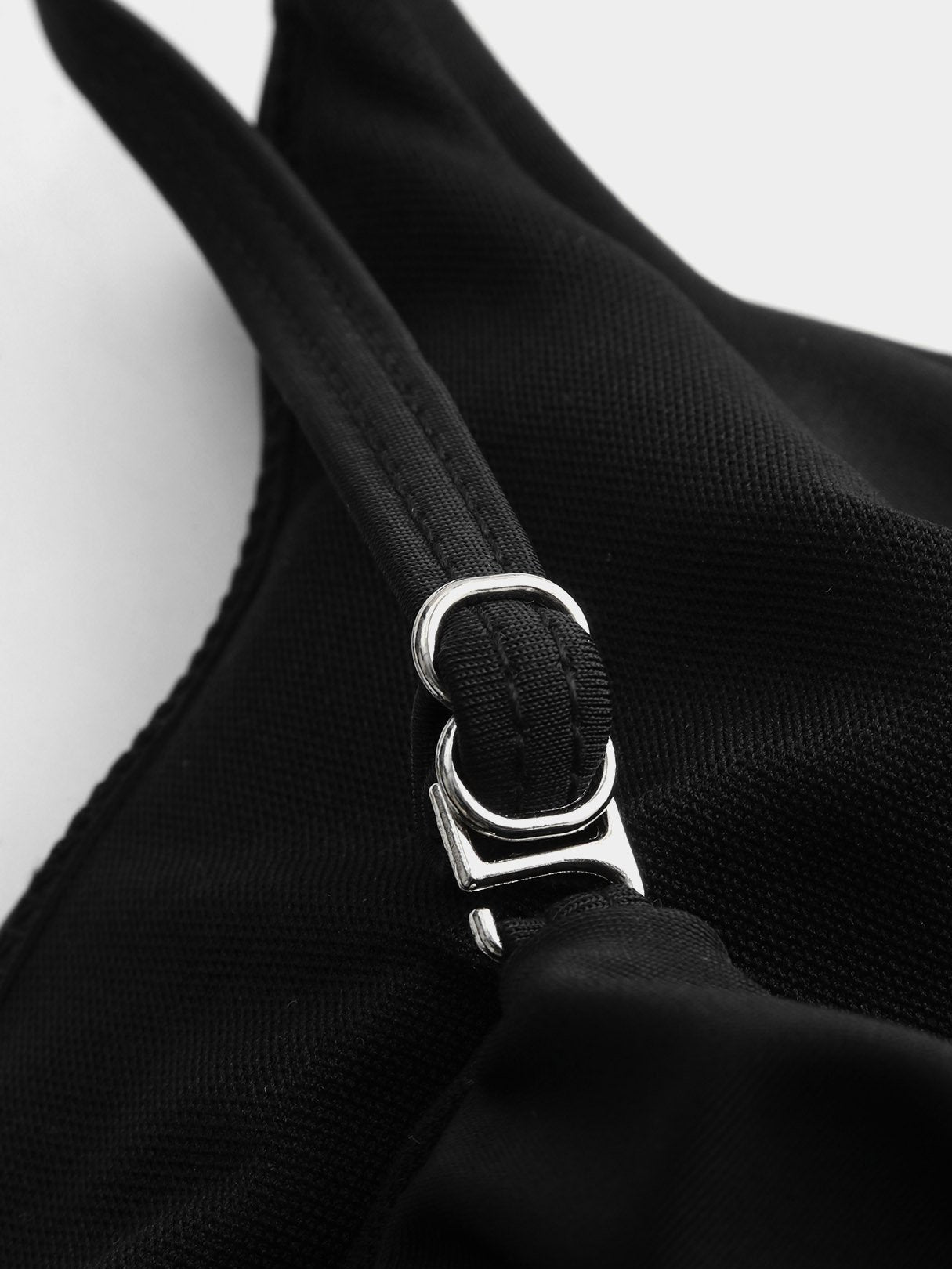 Black V-Neck Asymmetrical Sleeveless Floral Print Tie-Up Ruffle Trim Two Piece Bikinis