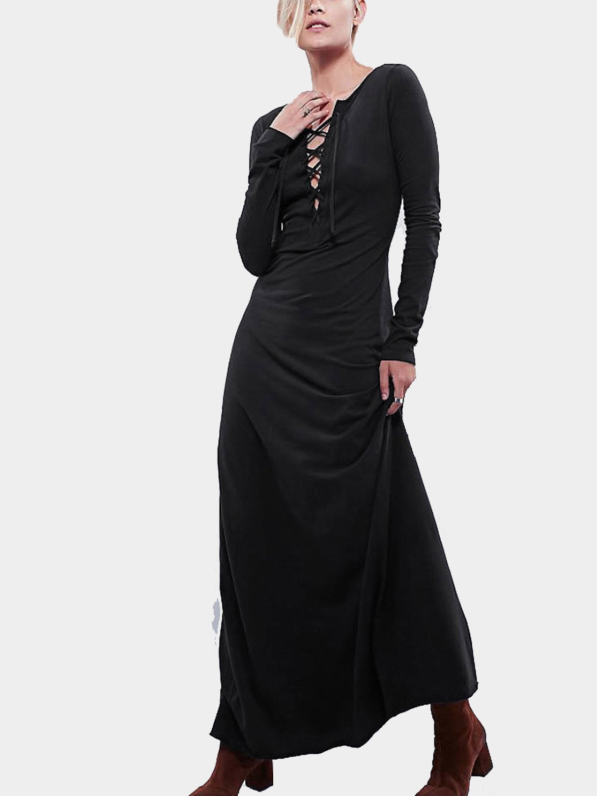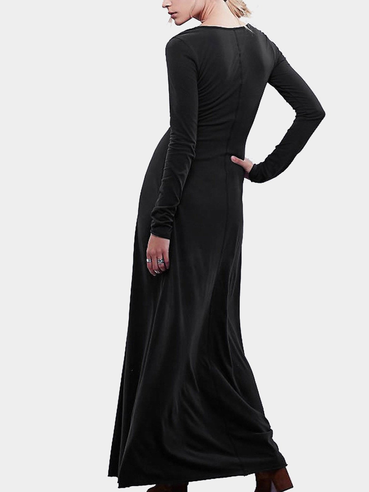 Black V-Neck Long Sleeve Maxi Dress