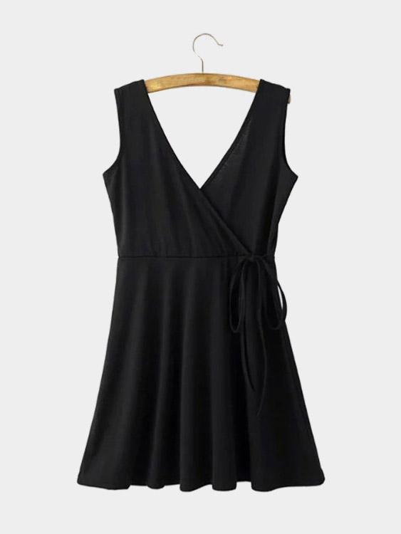 Material:PolyesterNeckline:V-NeckSeason:SummerSleeves:SleevelessDetail:Backless DesignLength:Mini