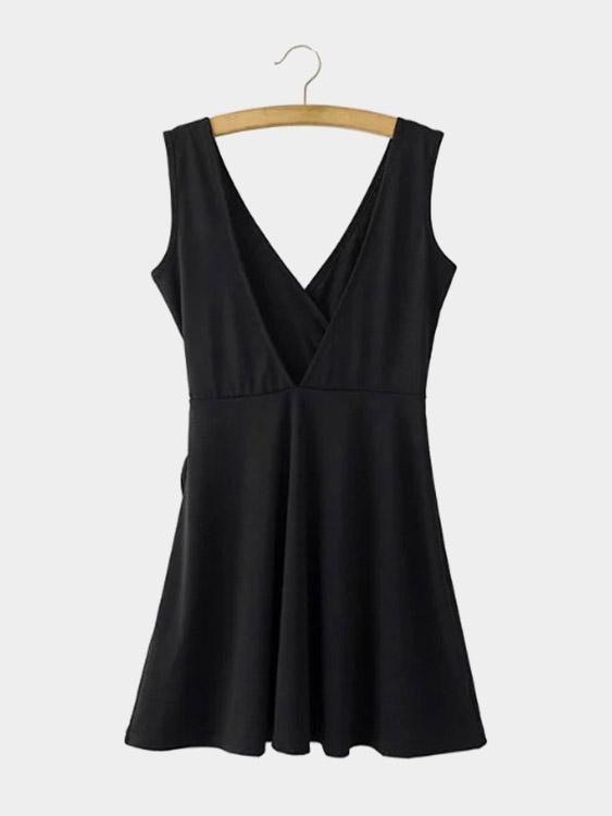 Black V-Neck Sleeveless Backless Mini Dress - Black / S is backordered and will ship as soon as it is back in stock.