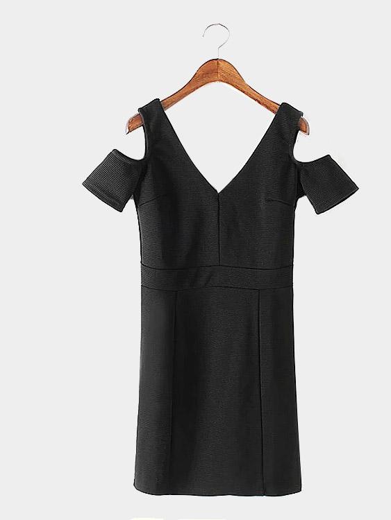 Black V-Neck Zip Back Bodycon Hem Mini Dress - Black / S is backordered and will ship as soon as it is back in stock.