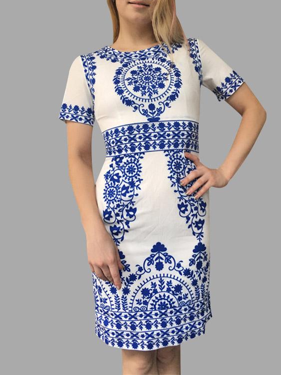 Blue Baroque High Waist Midi Dress