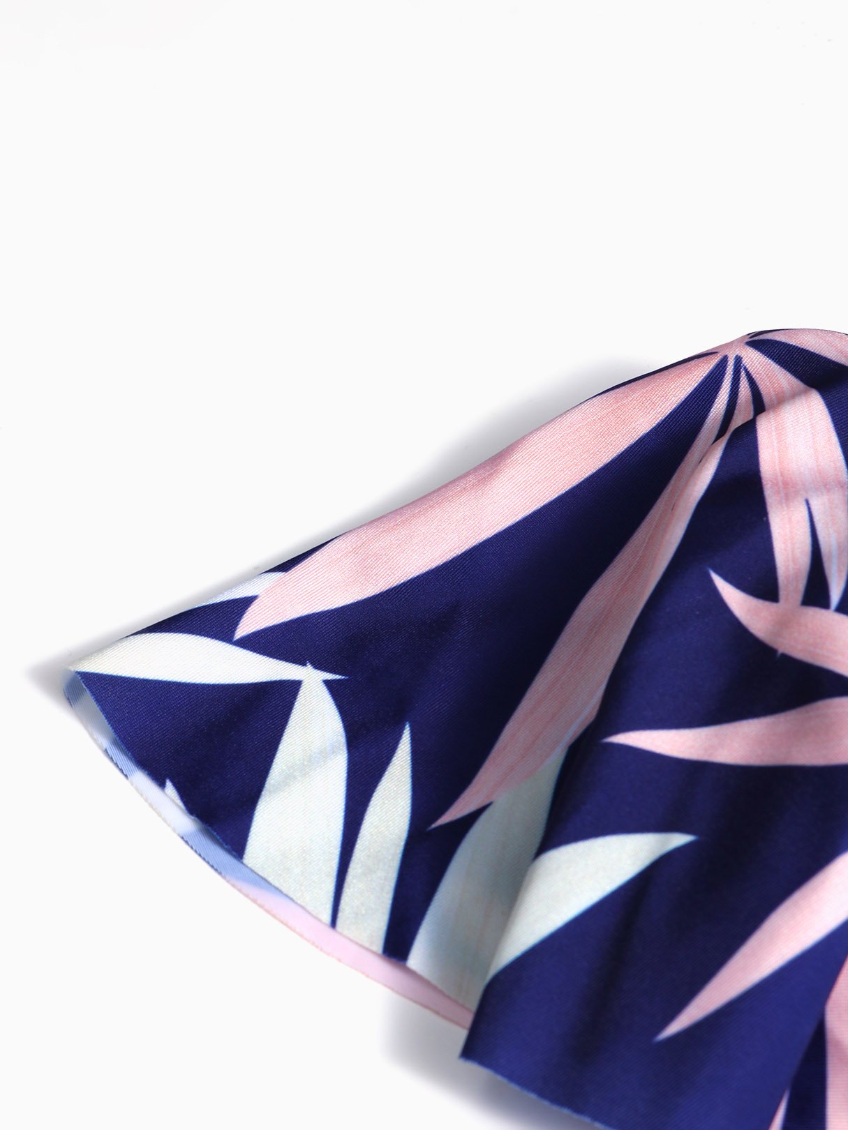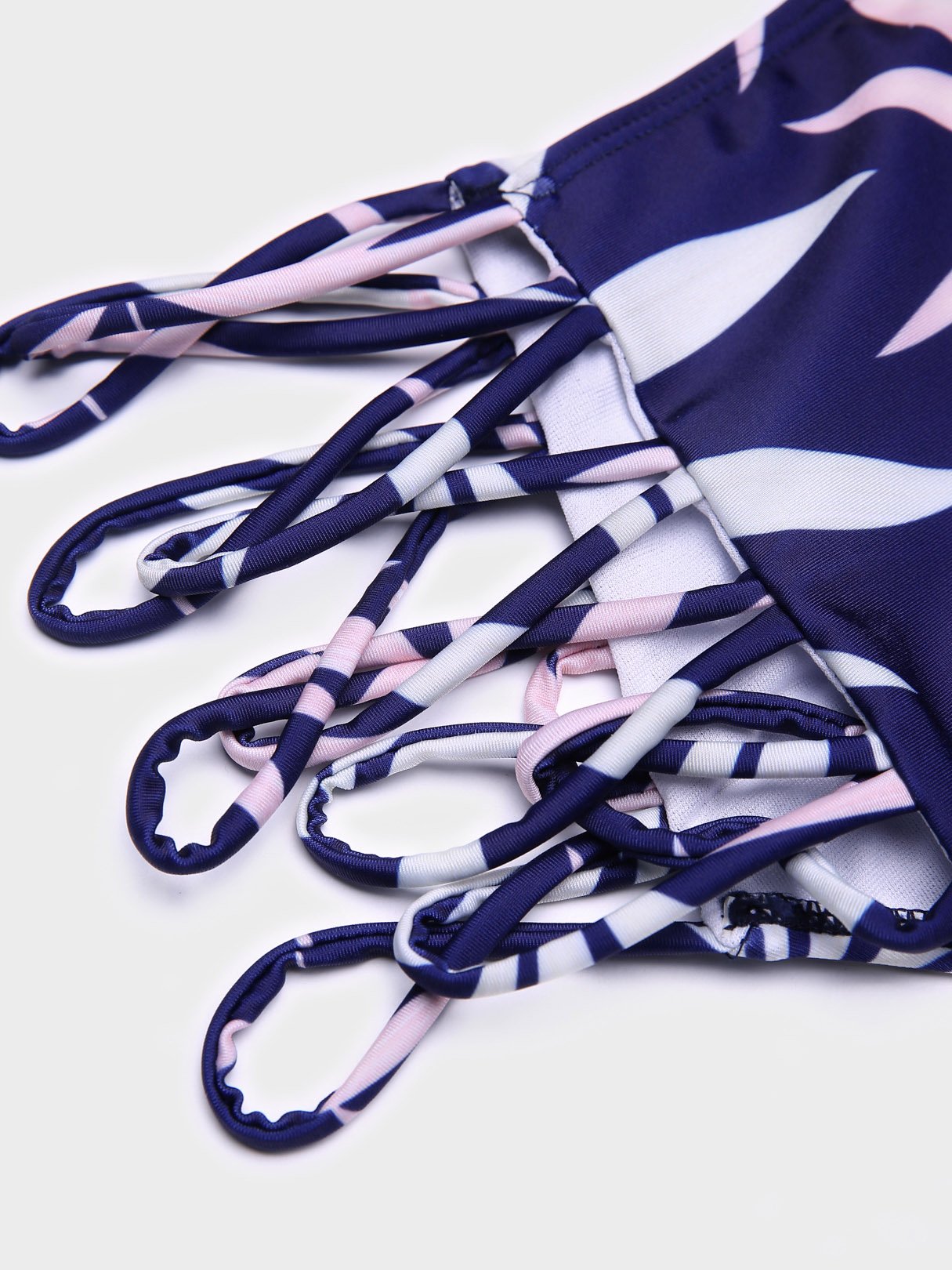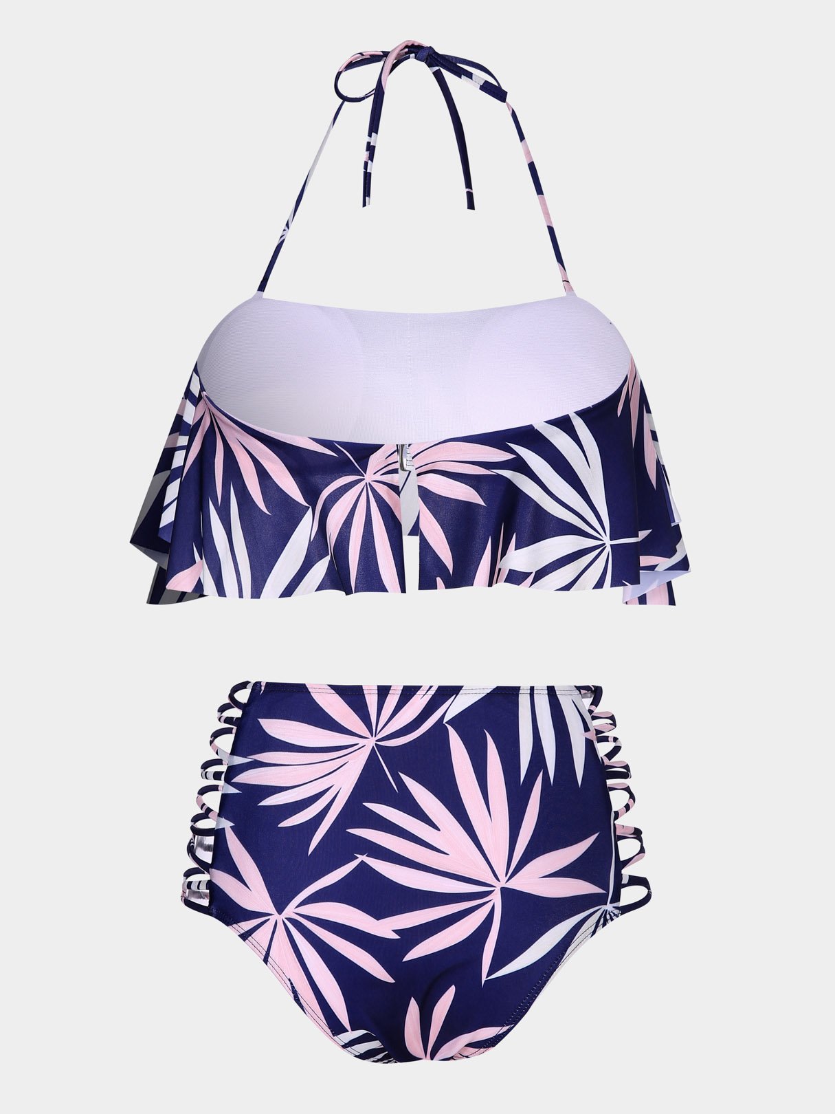 Blue Halter Deep V Neck Sleeveless Printed Bikini Set Swimwear