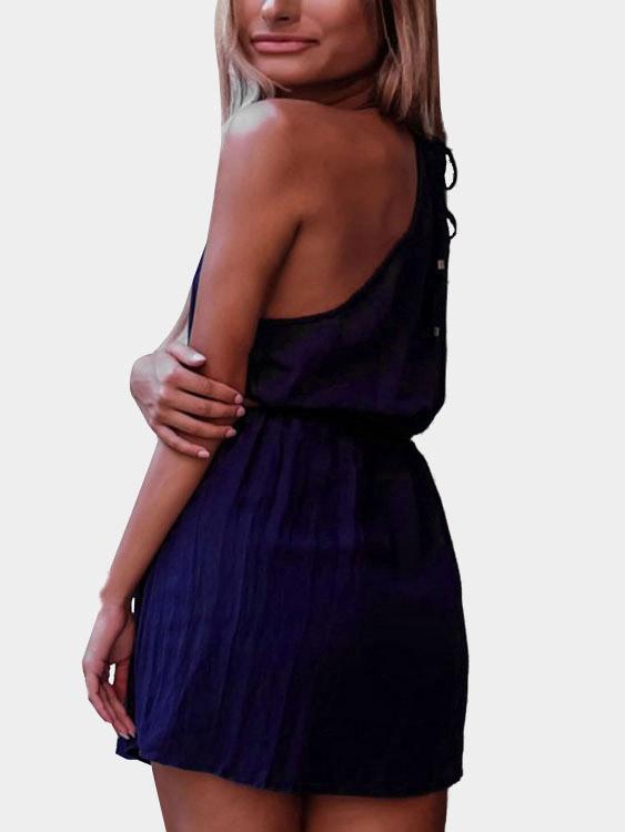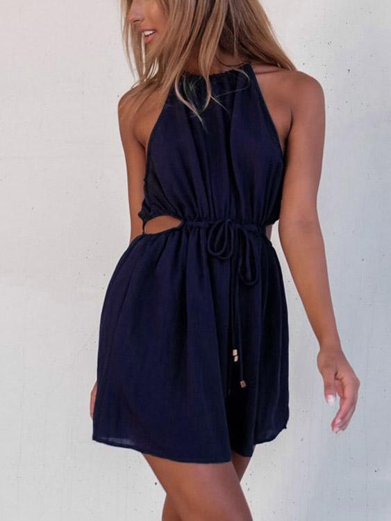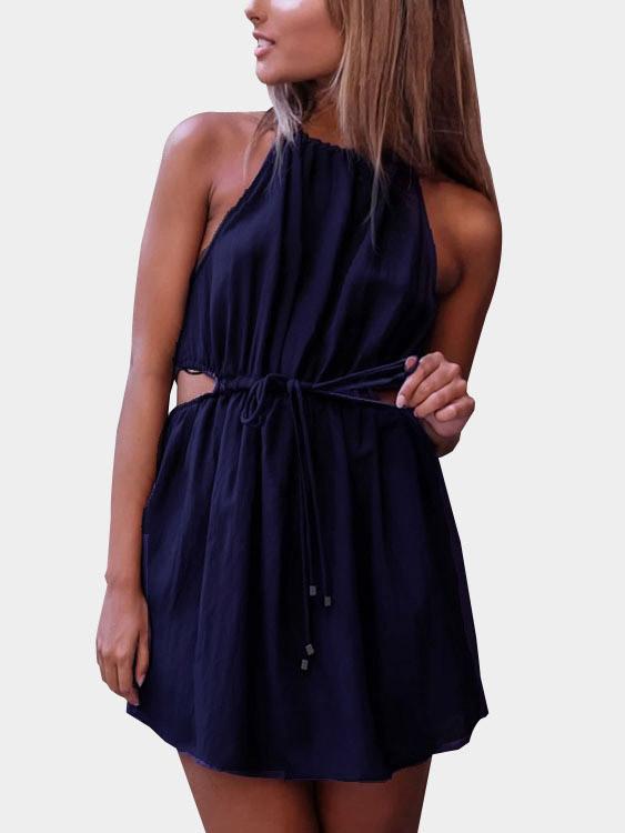 Blue Halter Sleeveless Lace-Up Cut Out Mini Dresses