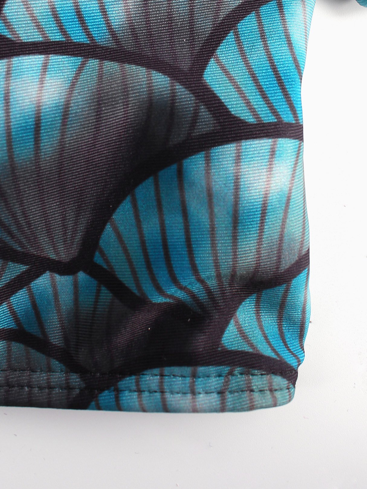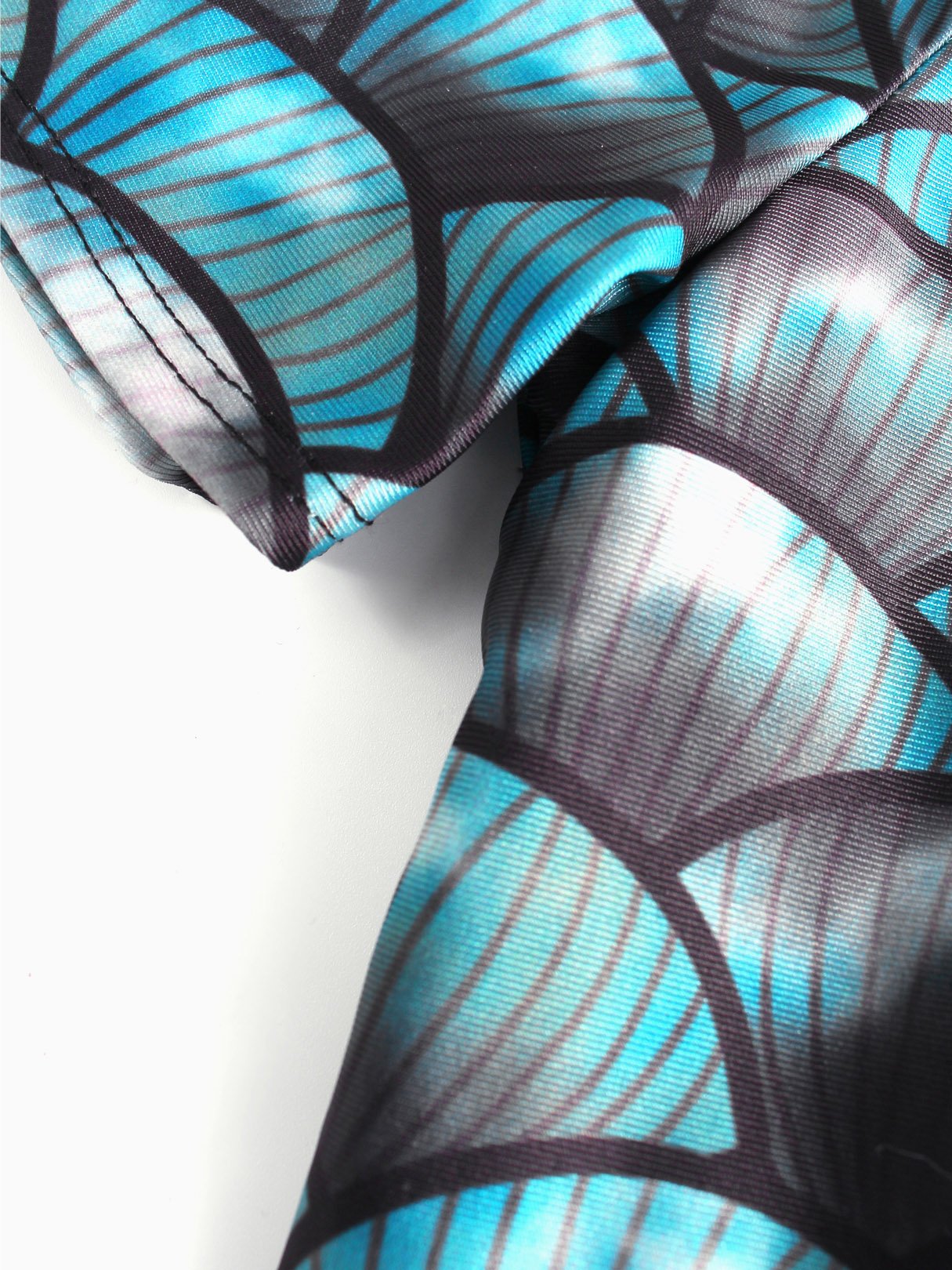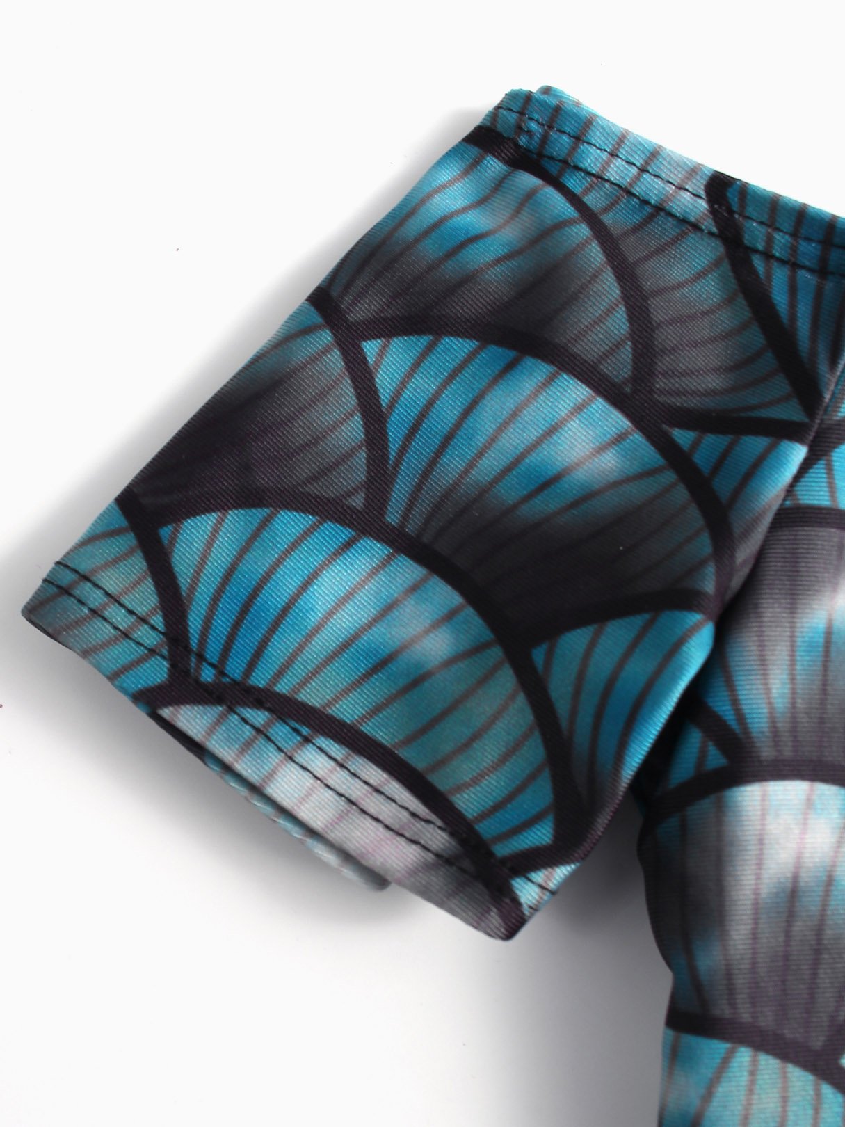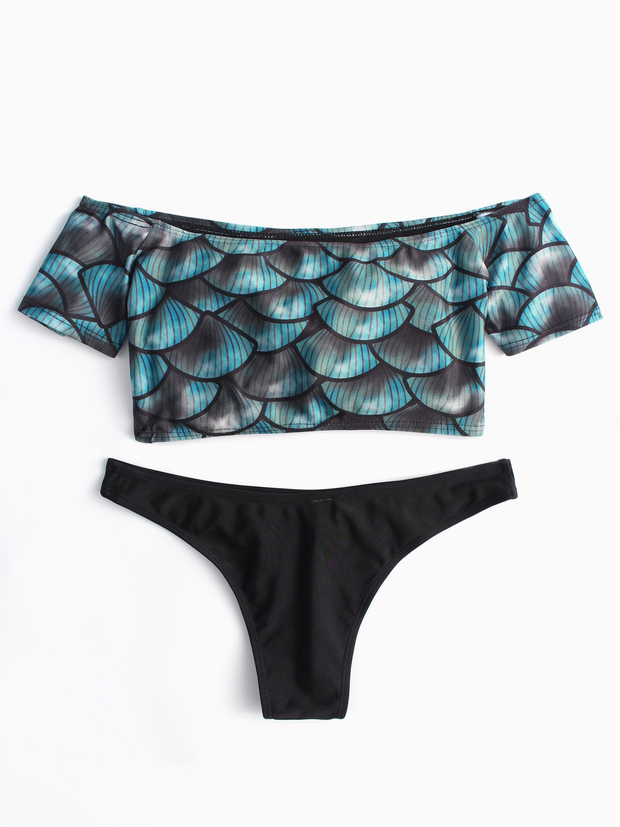 Blue Off The Shoulder Short Sleeve Printed Two Piece Bikinis