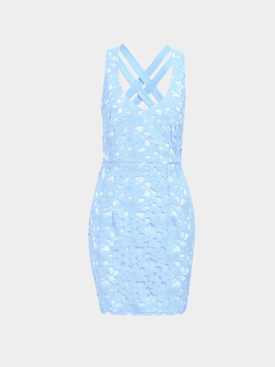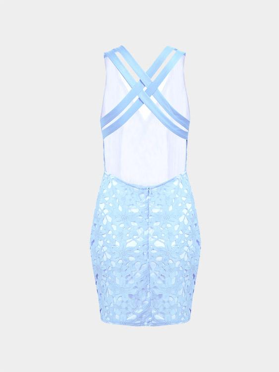 Blue Sleeveless Lace Mini Dress - Blue / S is backordered and will ship as soon as it is back in stock.