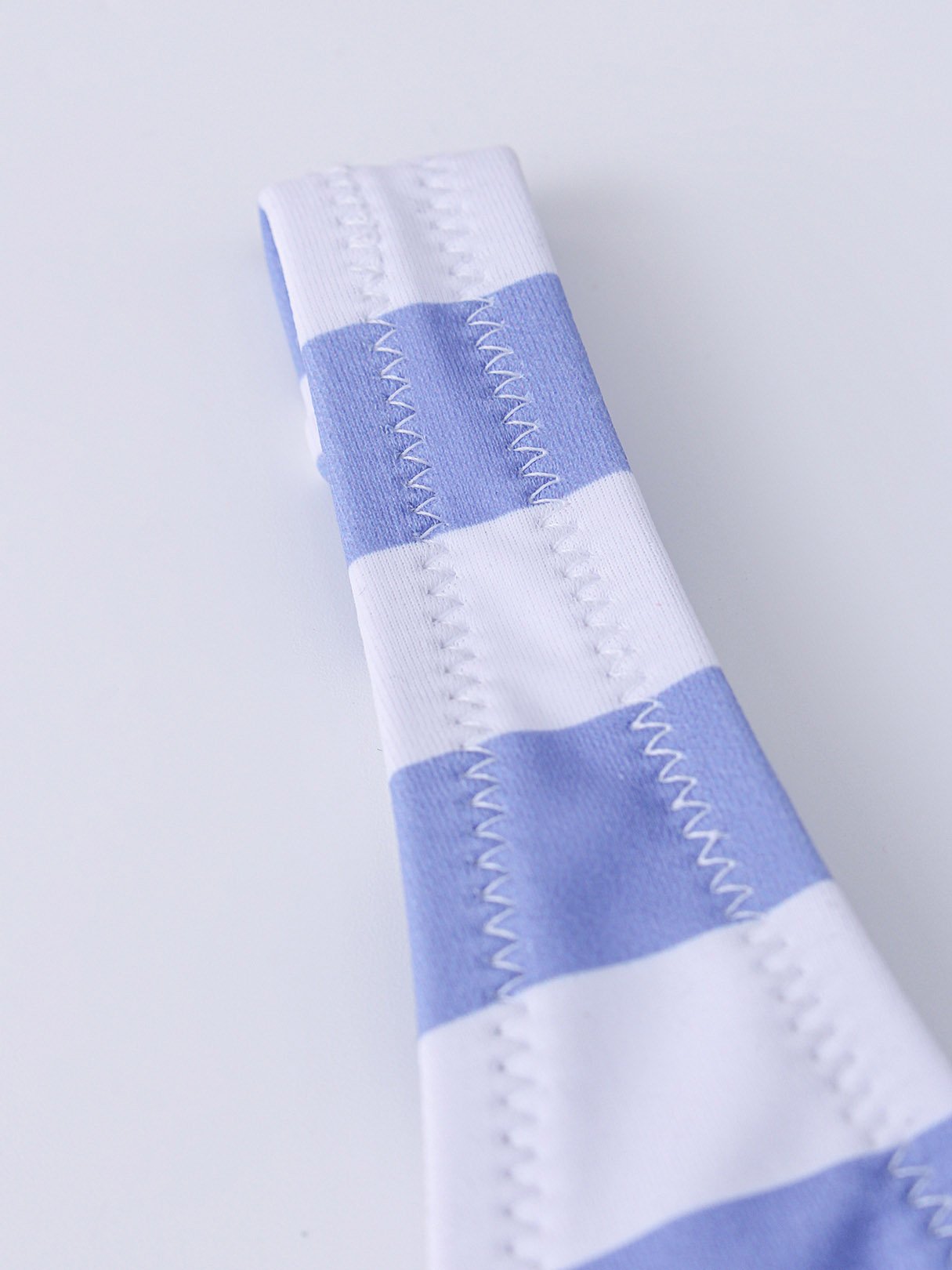 Blue Sleeveless Stripe Spaghetti Strap Self-Tie Two Piece Bikinis