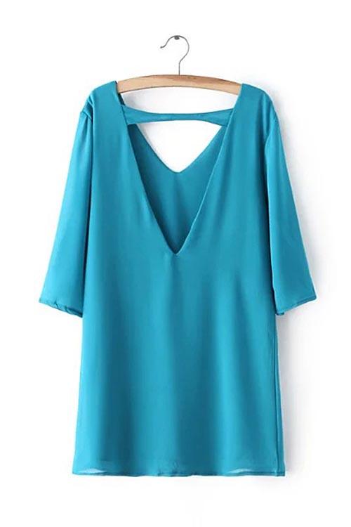 Blue V-Neck 3/4 Length Sleeve Mini Dress - Blue / S is backordered and will ship as soon as it is back in stock.