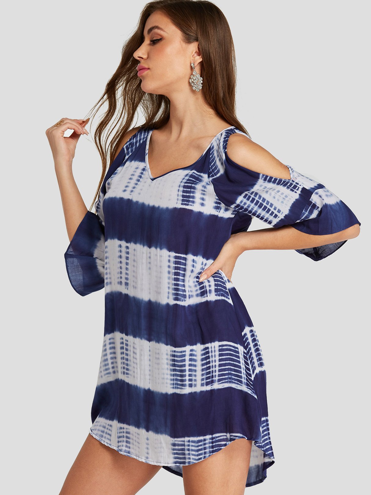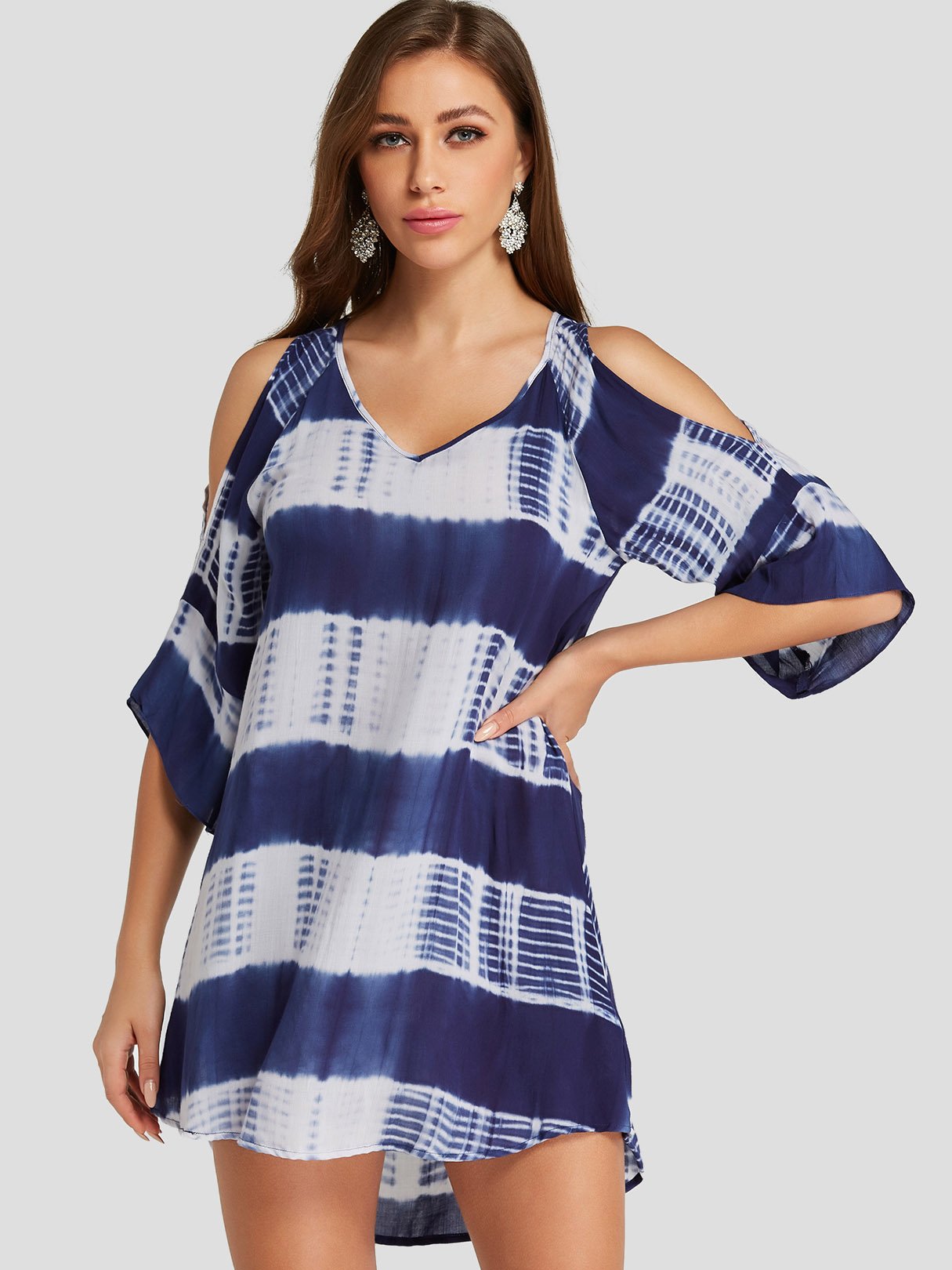 Material:PolyesterNeckline:V-NeckSeason:Spring,SummerSleeves:Half SleevesStyle:Simple Style,Vacation StyleLength:MiniFit:Regular FitOccasion:Vacation
