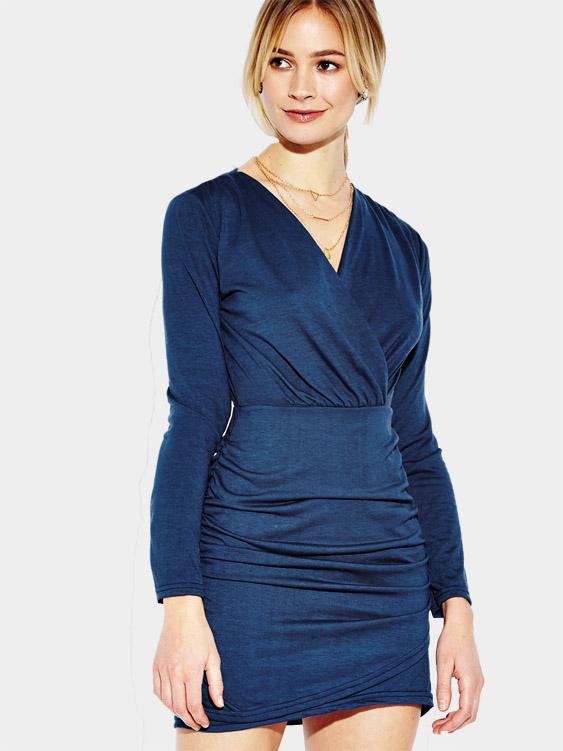 Blue V-Neck Long Sleeve Bodycon Hem Dresses - Blue / US 2 is backordered and will ship as soon as it is back in stock.