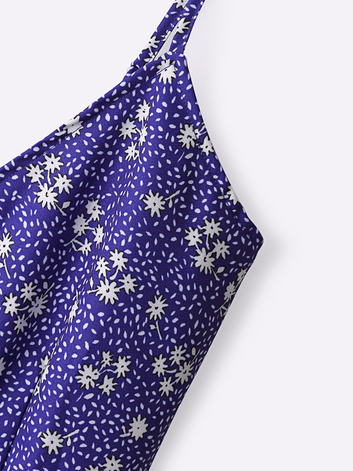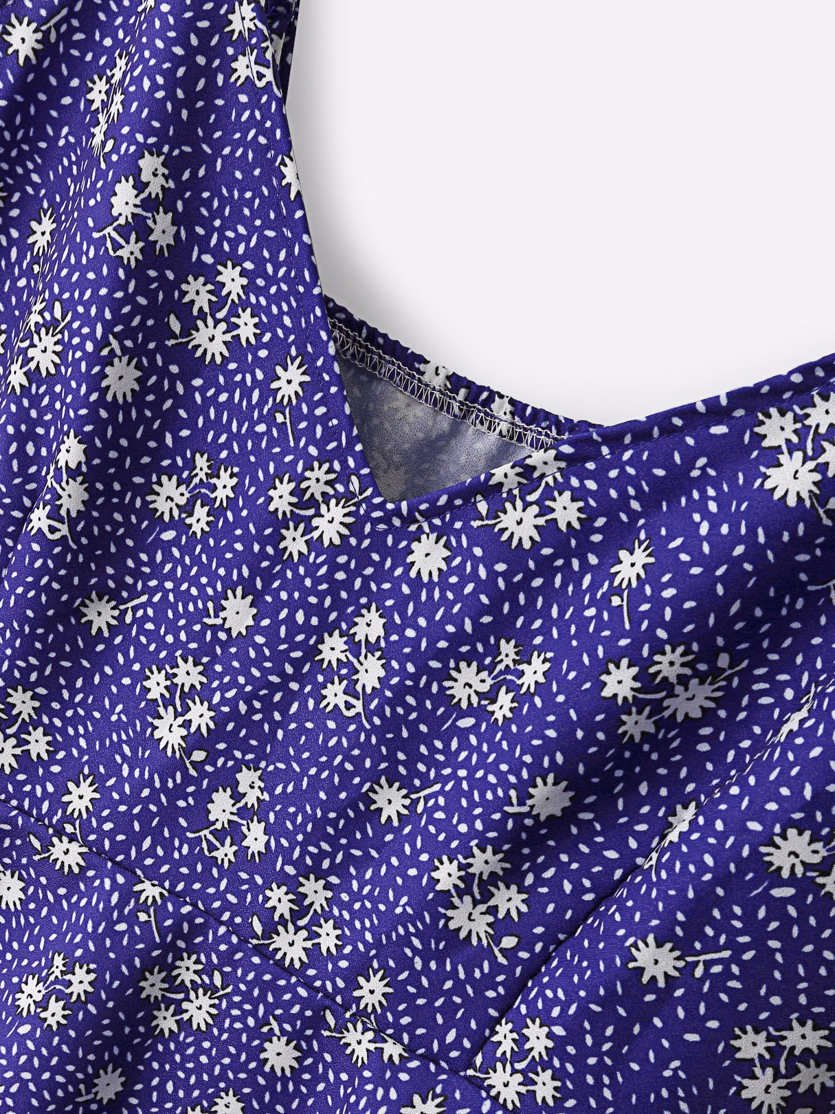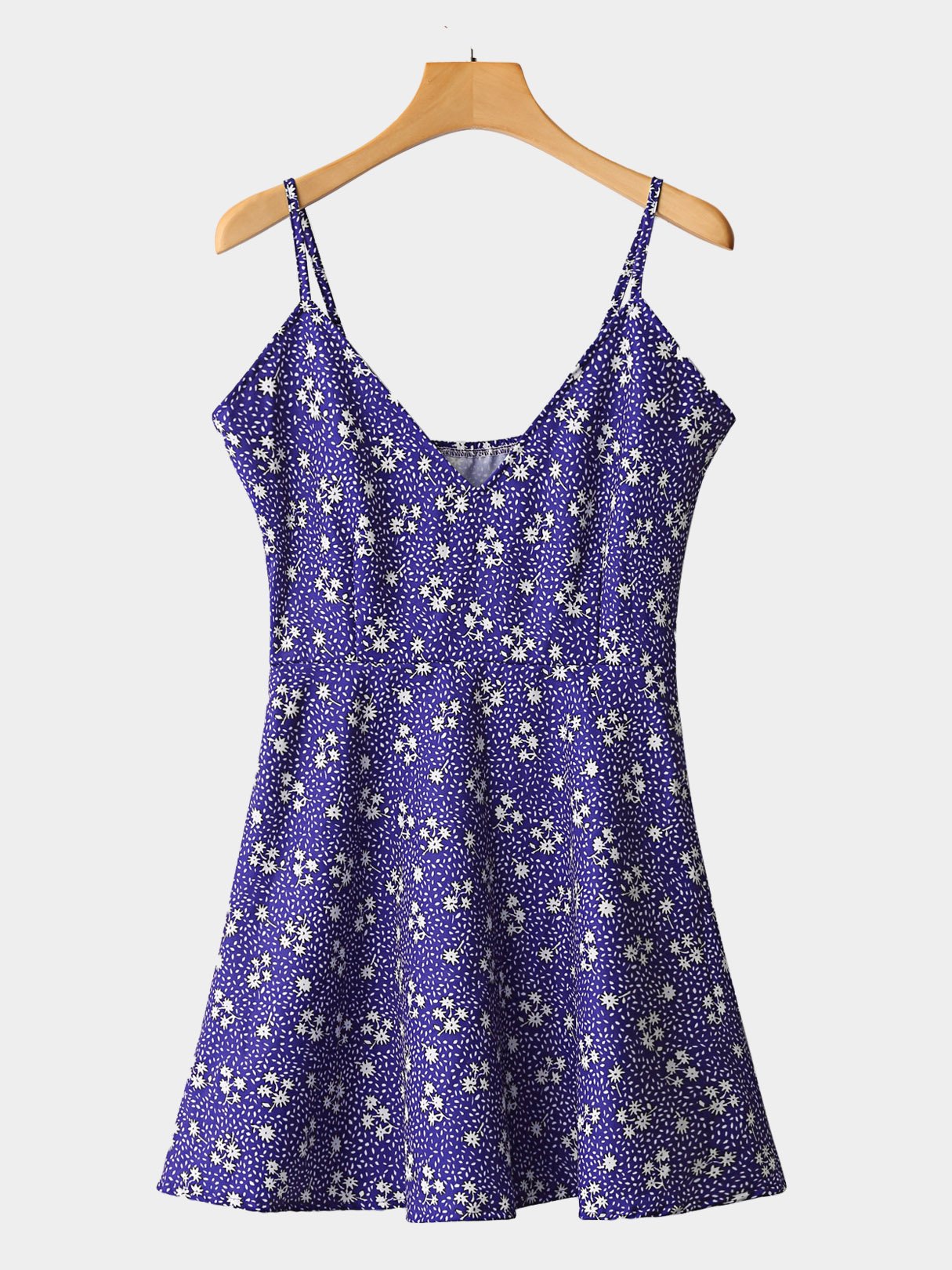 Blue V-Neck Sleeveless Floral Print Calico Mini Dress - Blue / S is backordered and will ship as soon as it is back in stock.