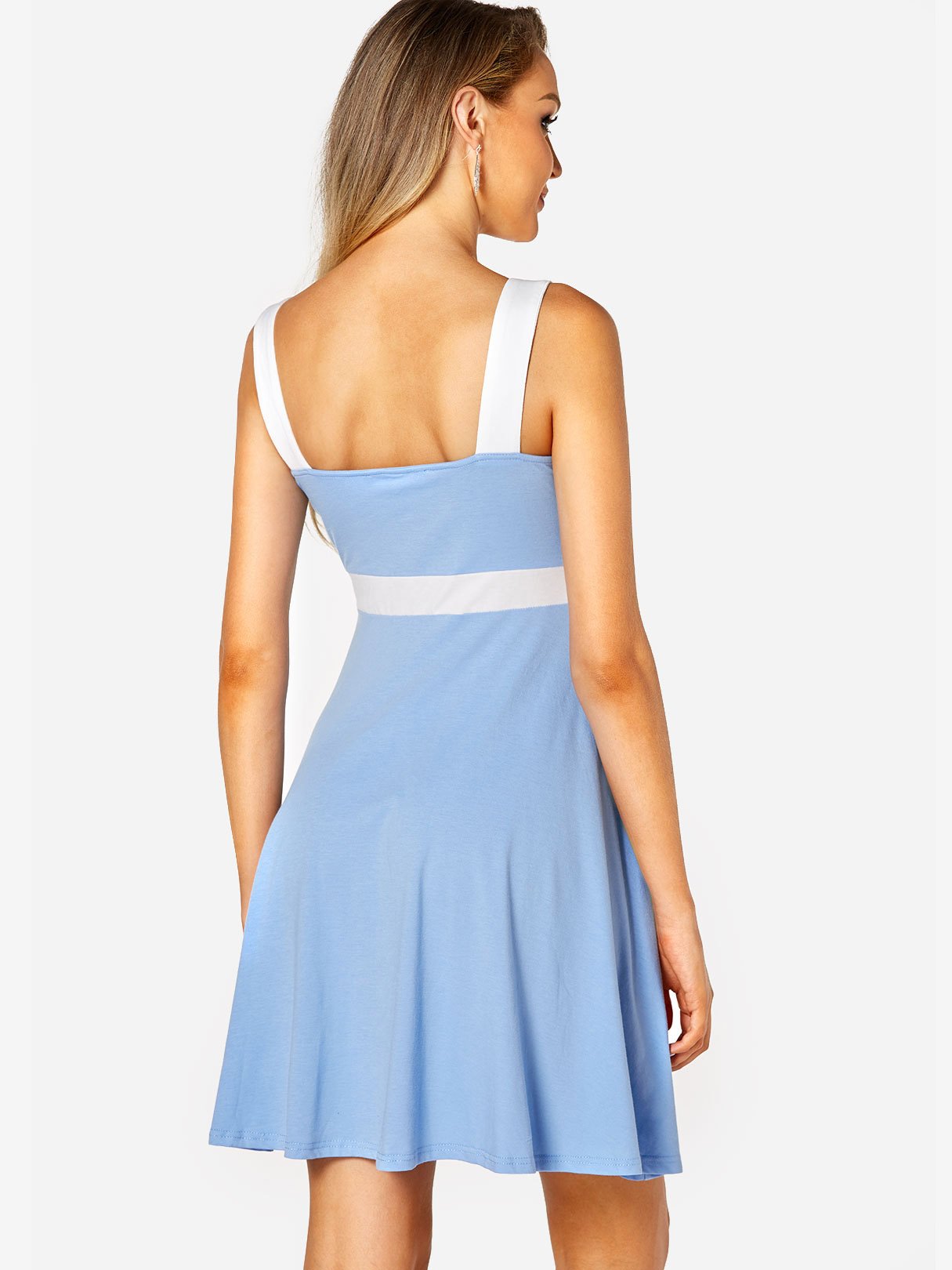Blue V-Neck Sleeveless High-Waisted Mini Dress - Blue / S is backordered and will ship as soon as it is back in stock.
