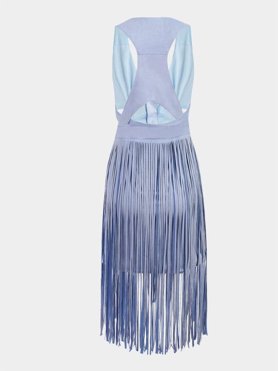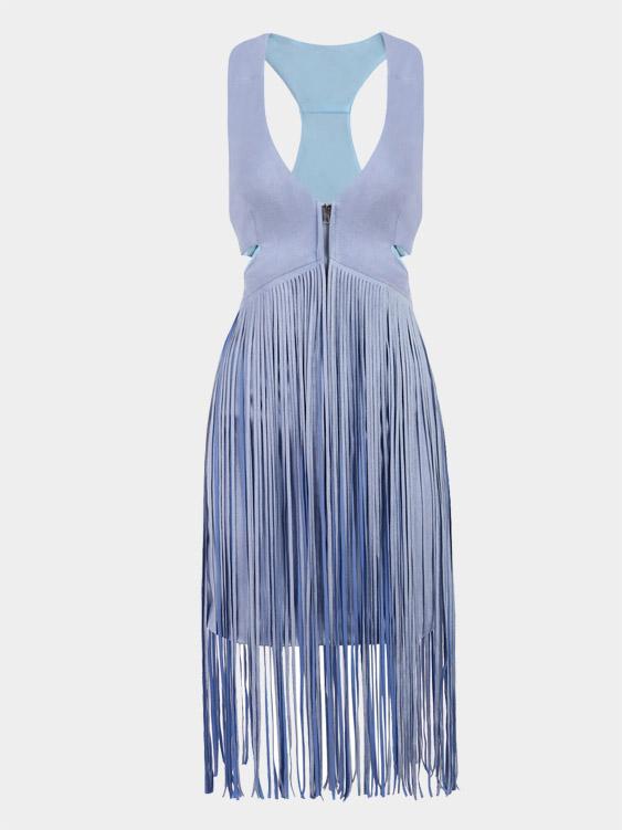 Blue V-Neck Sleeveless Tassel Cut Out Mini Dress - Blue / US 2 is backordered and will ship as soon as it is back in stock.