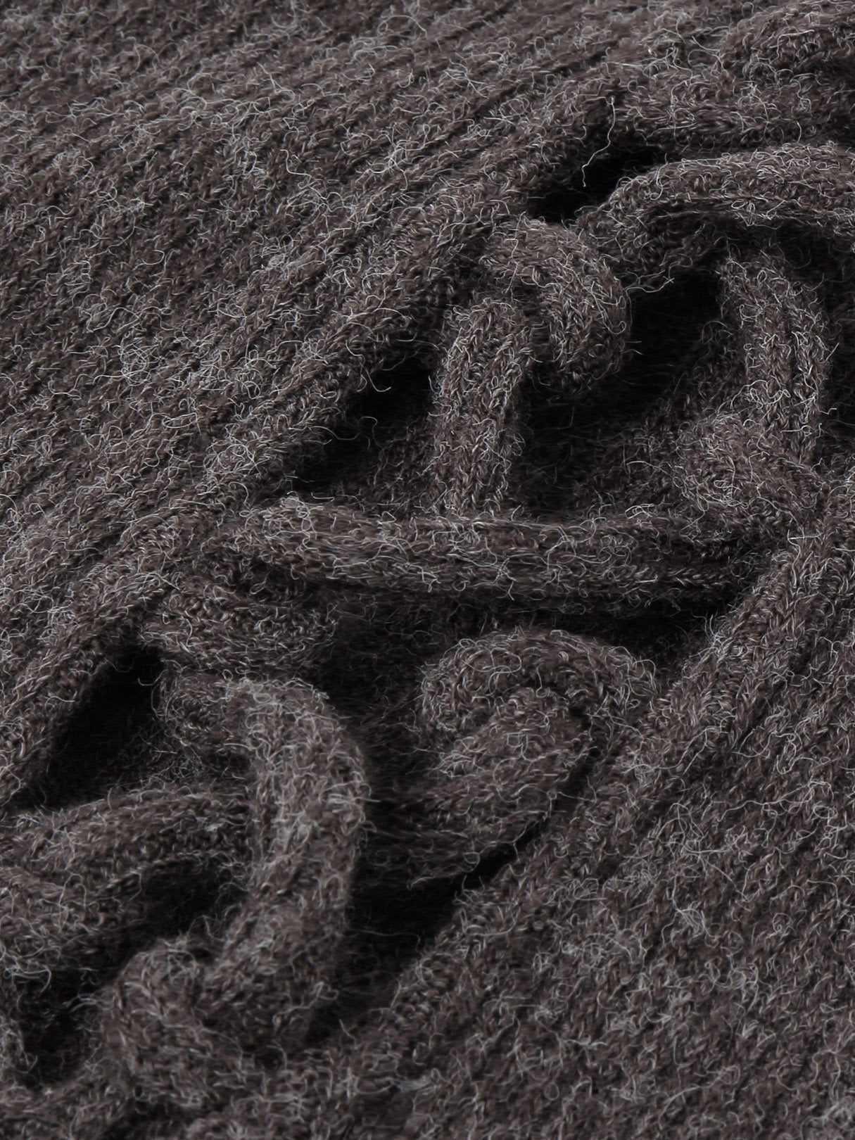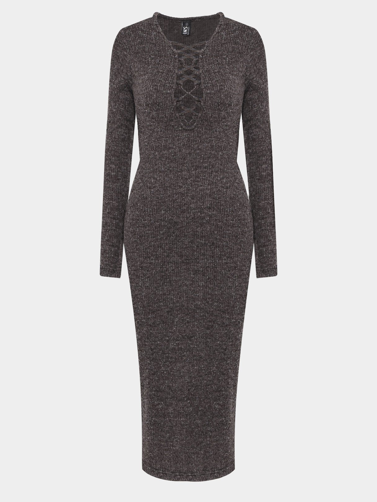 Brown V-Neck Long Sleeve Lace-Up Midi Dress