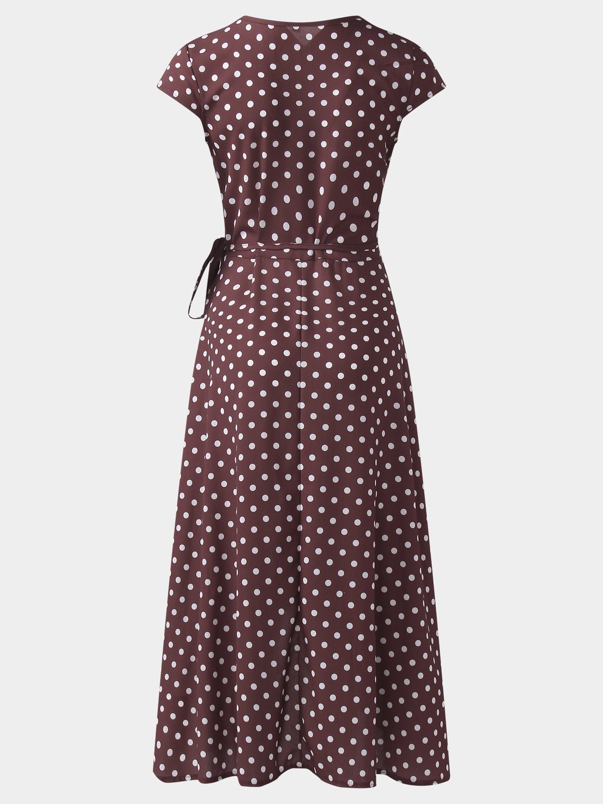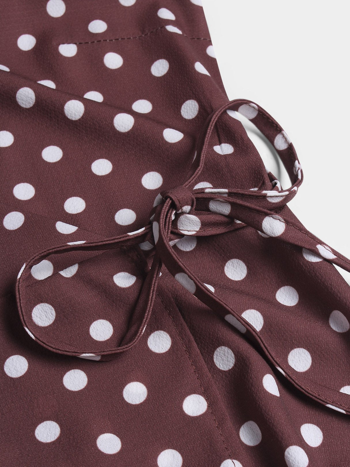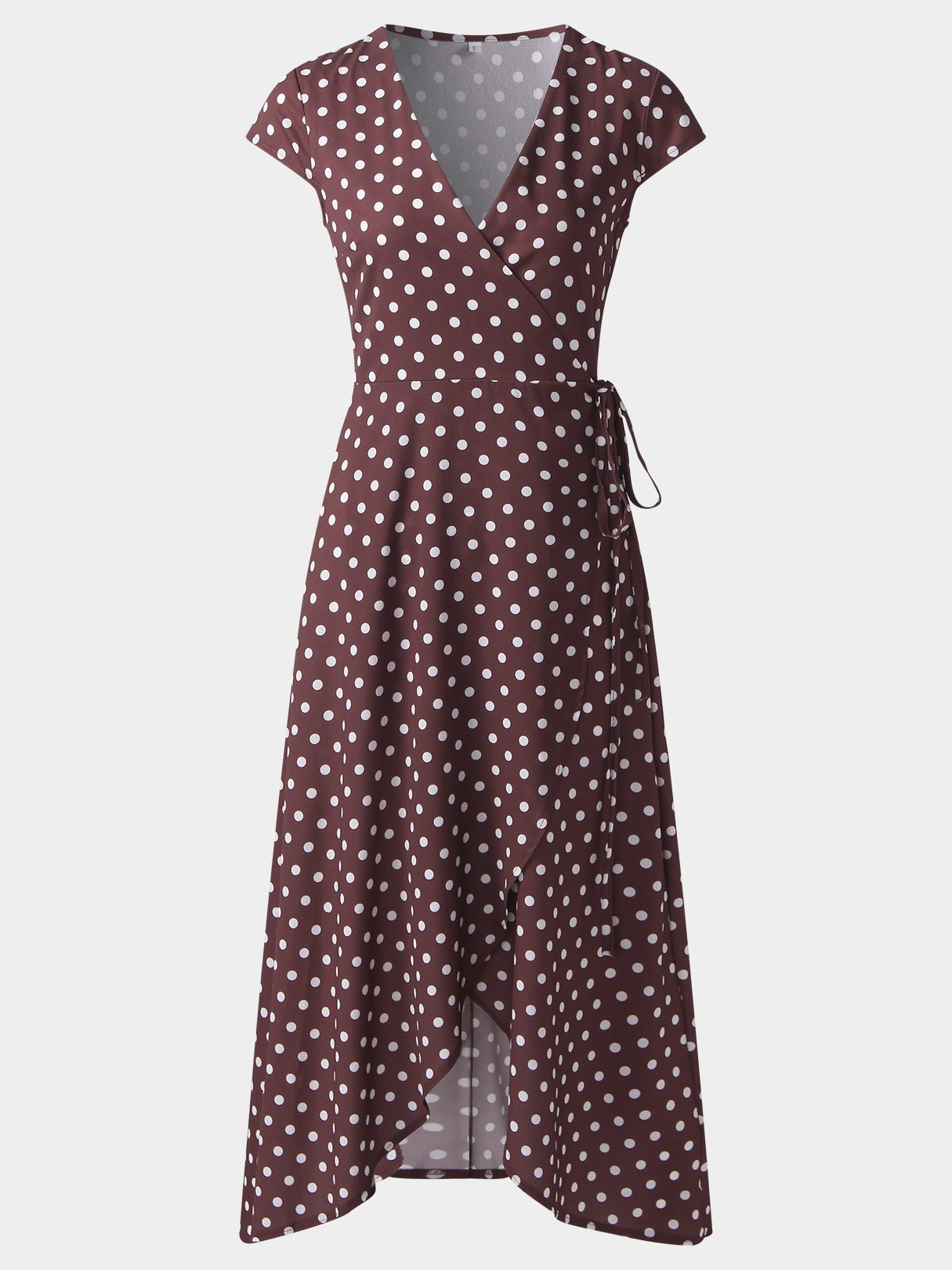 Brown V-Neck Sleeveless Crossed Front Lace-Up Wrap Irregular Hem Dress