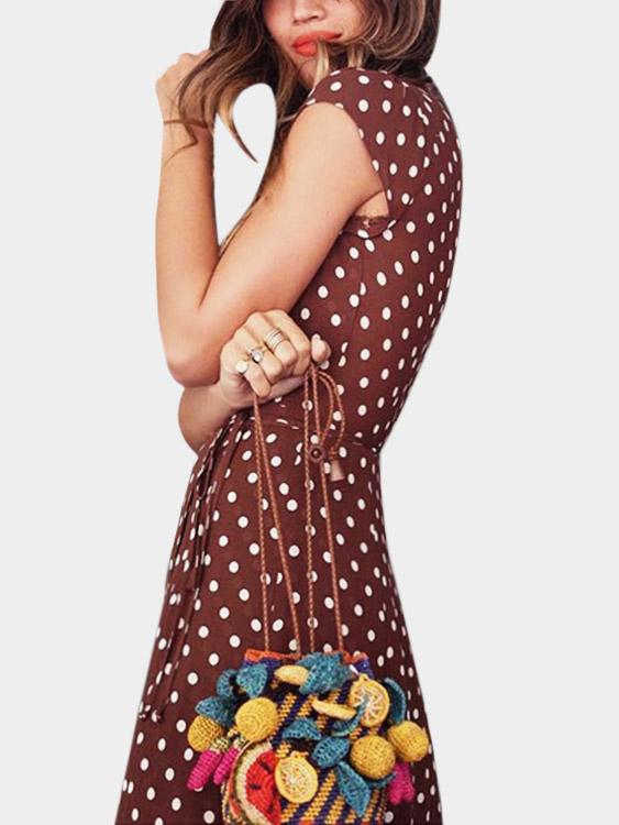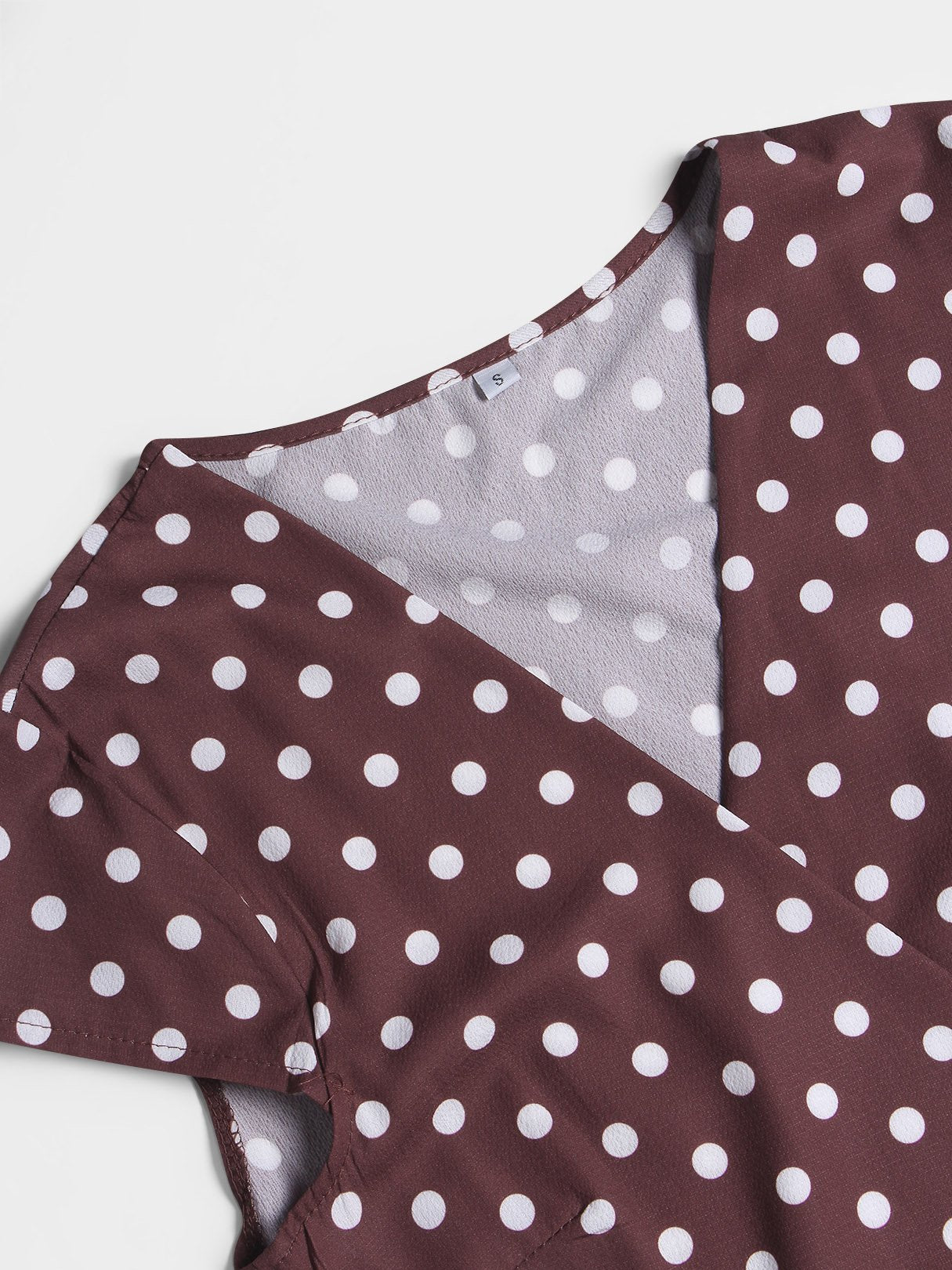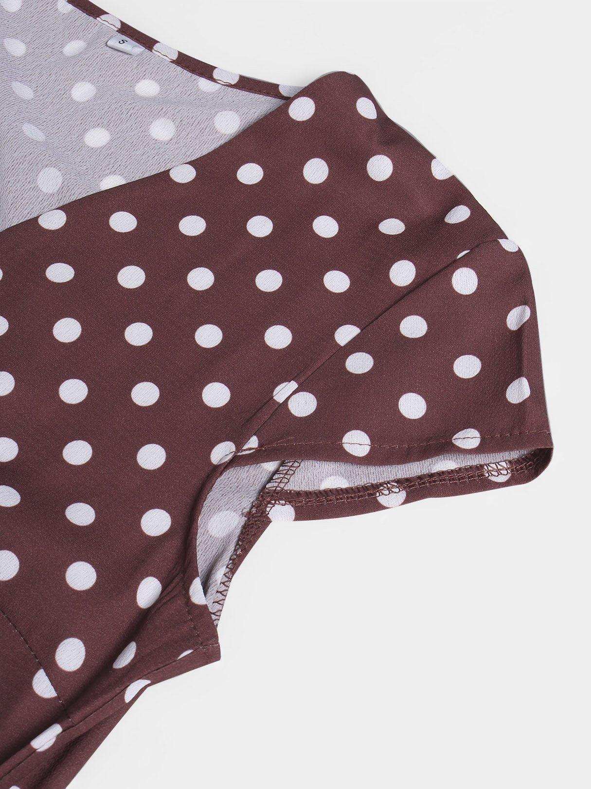 Brown V-Neck Sleeveless Crossed Front Lace-Up Wrap Irregular Hem Dress