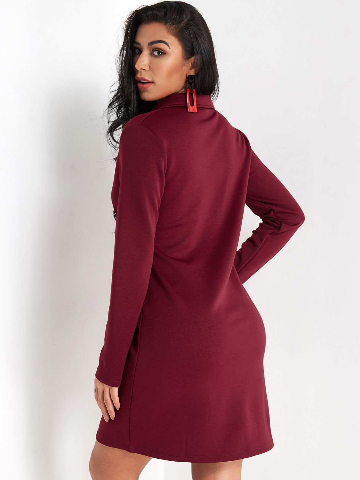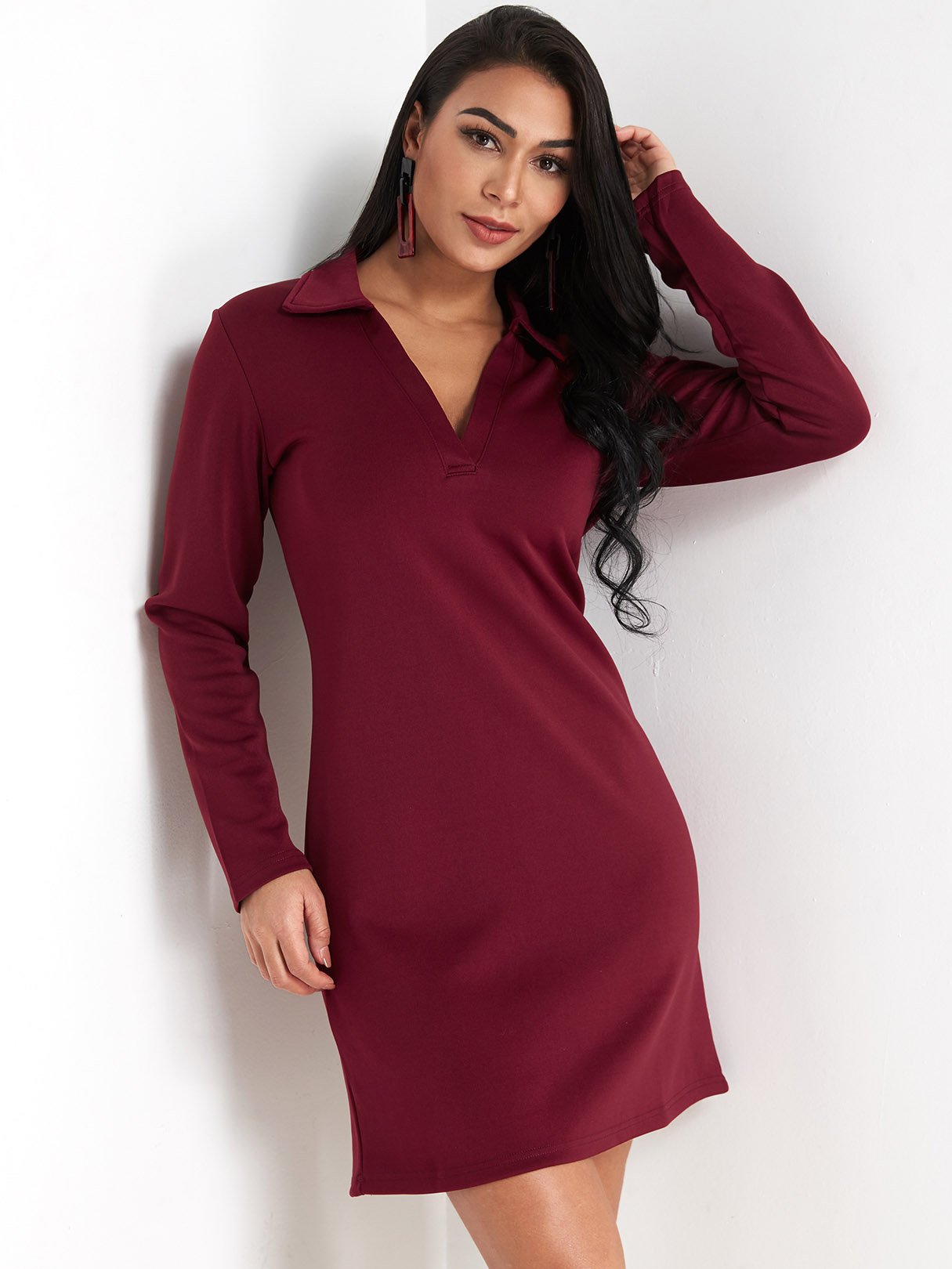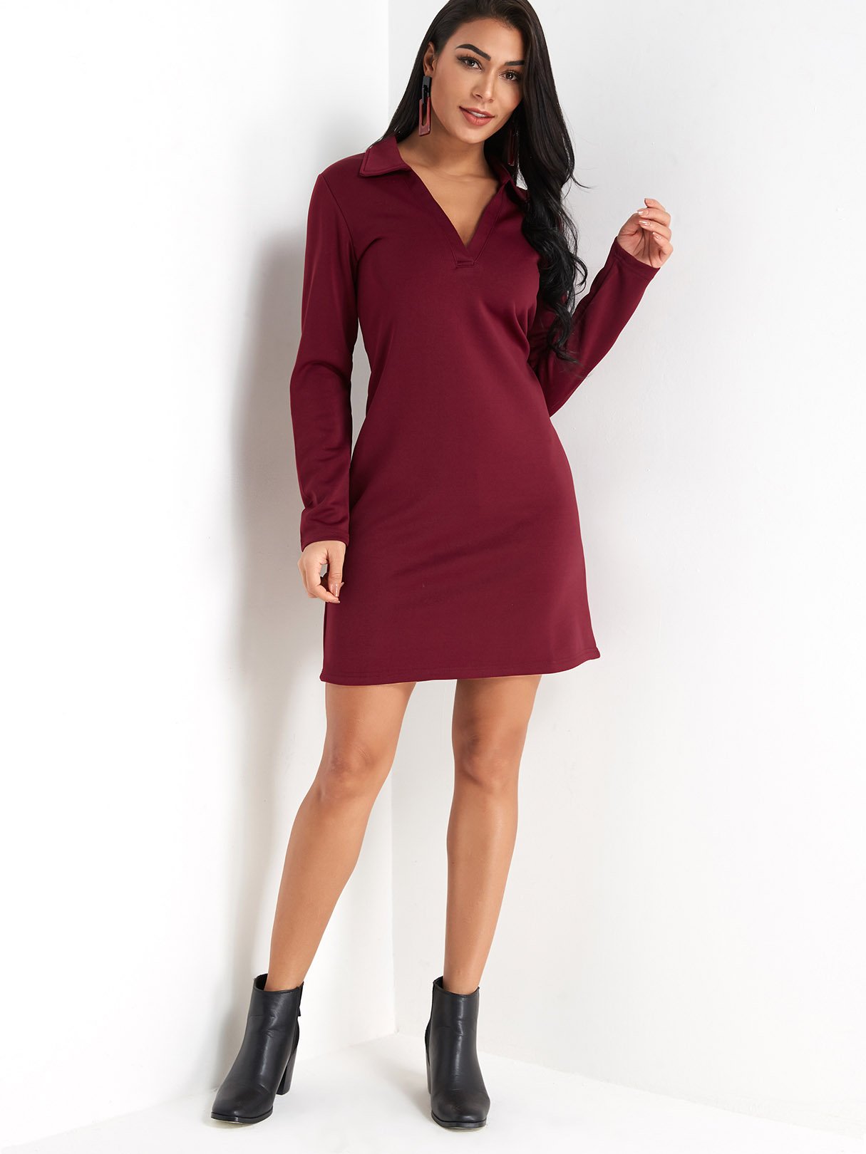 Burgundy Deep V Neck Long Sleeve Plain Mini Dress - Burgundy / S is backordered and will ship as soon as it is back in stock.