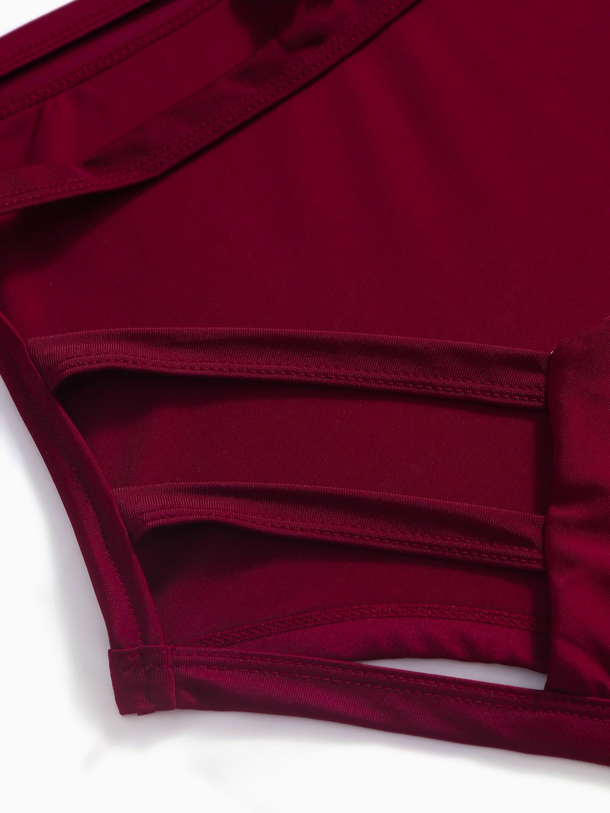 Burgundy Scoop Neck Sleeveless Backless Hollow Cut Out Bodycon Two Piece Bikinis