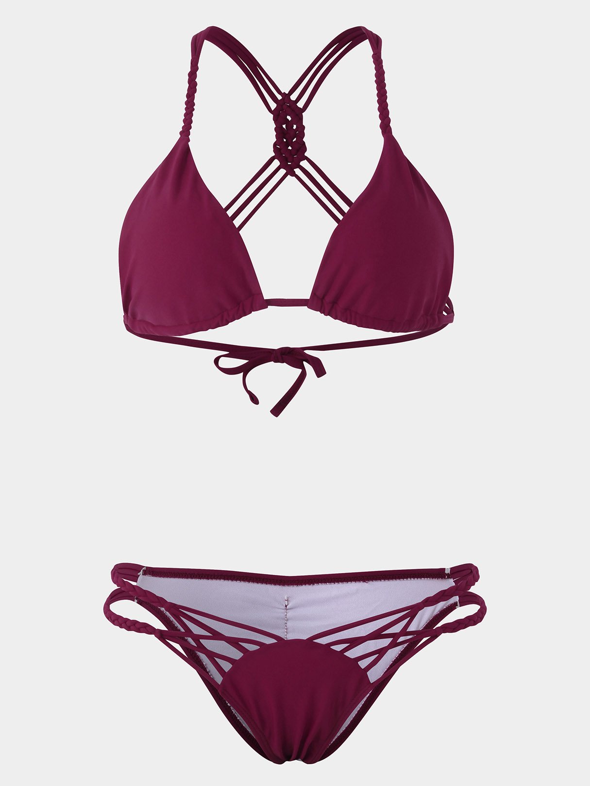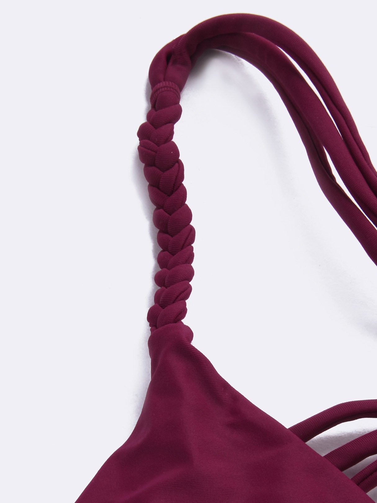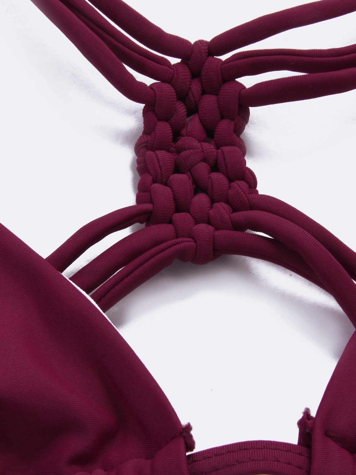 Burgundy Sleeveless Lace-Up Low-waisted Swimwears Bikinis