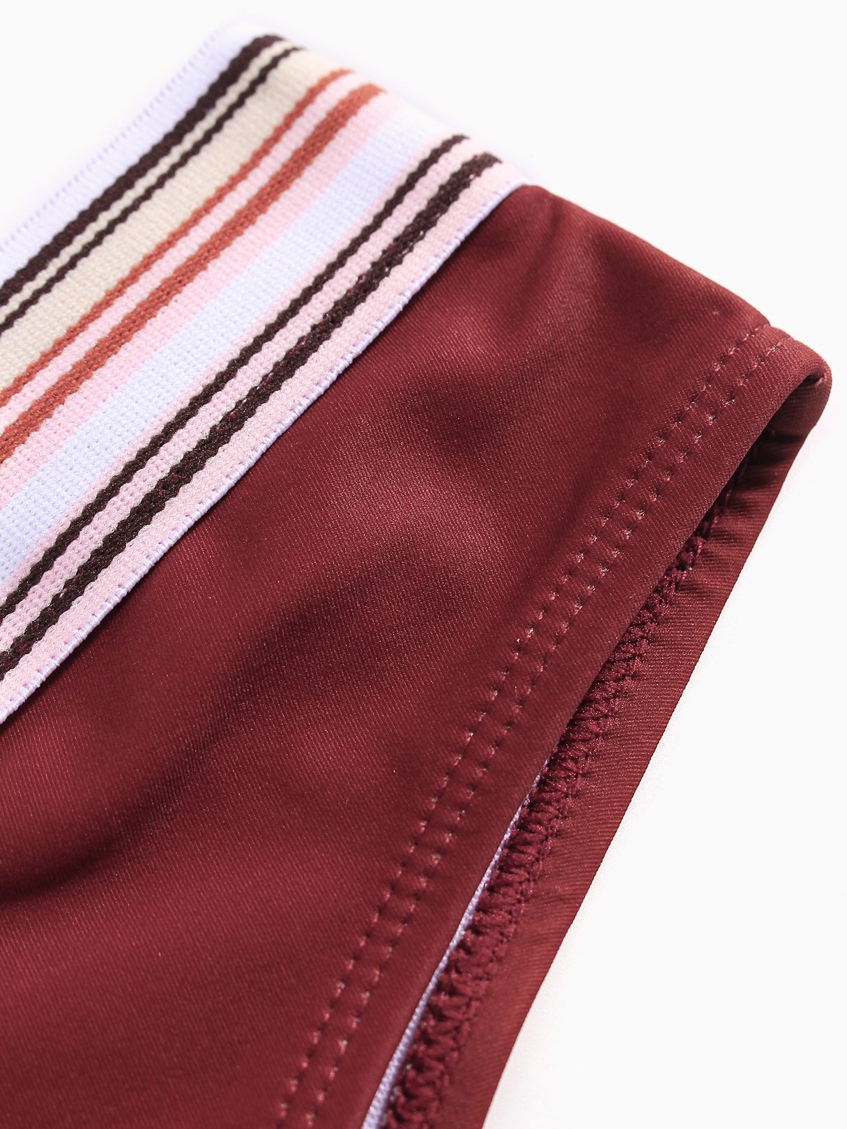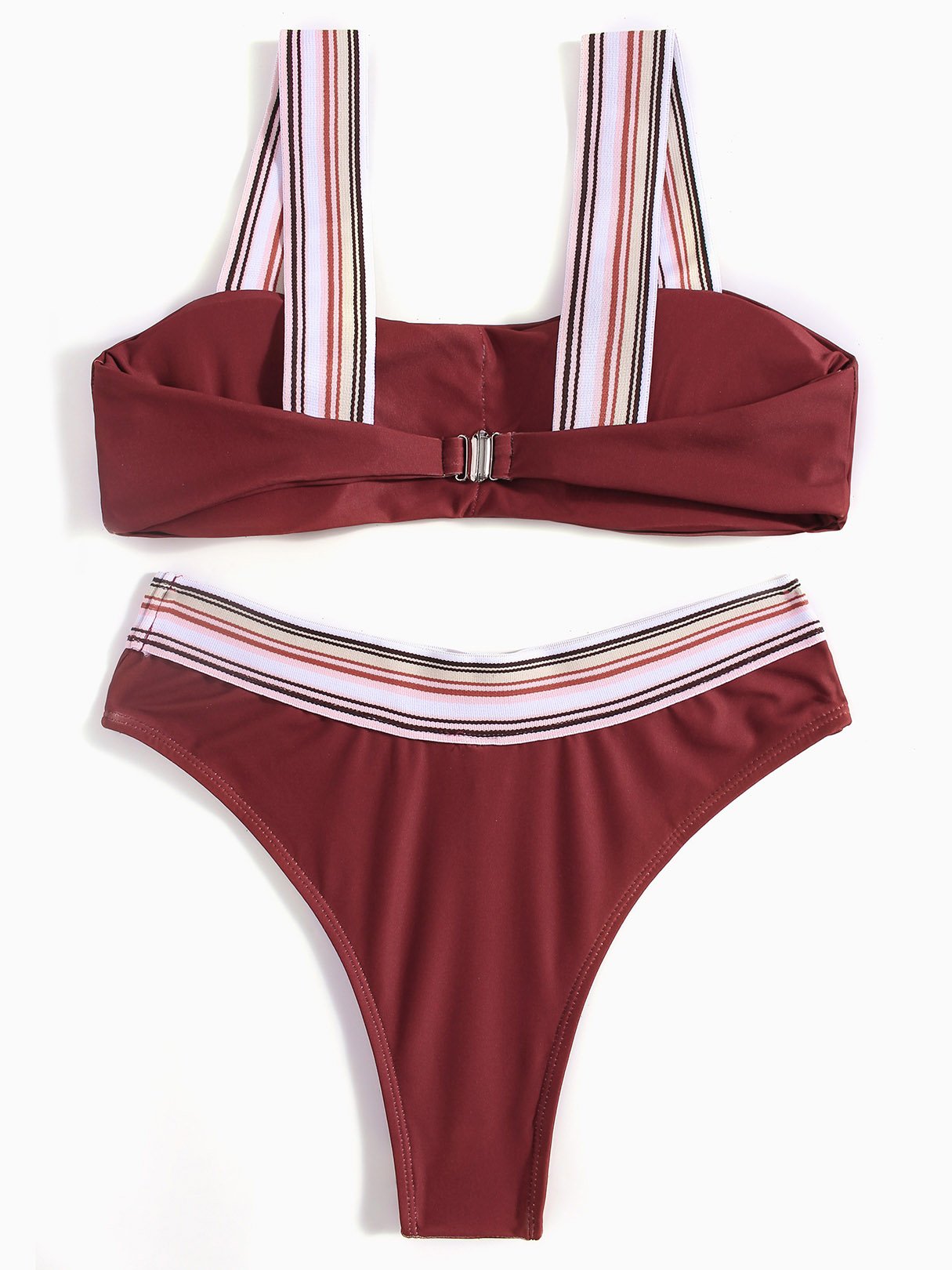 Burgundy Sleeveless Plain Spaghetti Strap Two Piece Bikinis