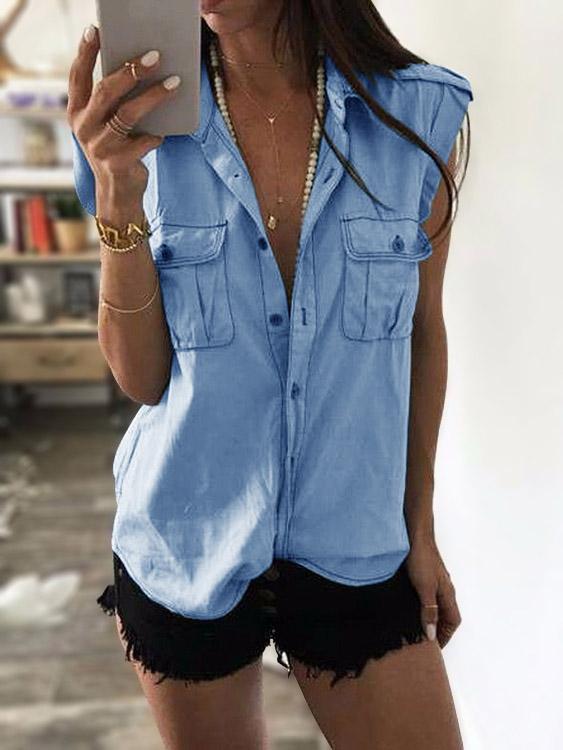Button-down Sleeveless Shirts - Blue / S is backordered and will ship as soon as it is back in stock.