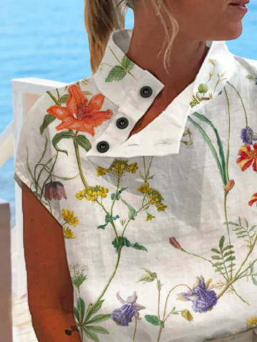 Casual Cap Sleeve Asymmetrical Floral Fashion Regular Blouses - White / S is backordered and will ship as soon as it is back in stock.