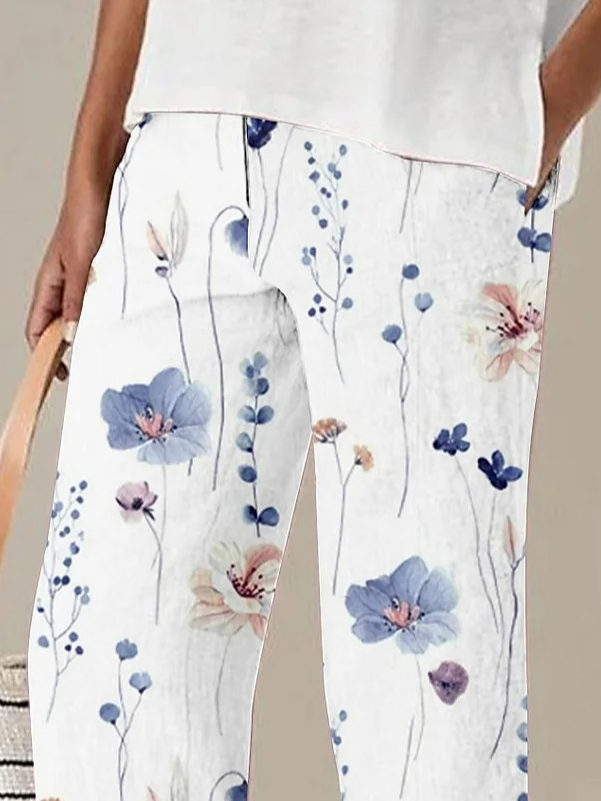 Casual Floral Fashion Ankle Pants - White / S is backordered and will ship as soon as it is back in stock.