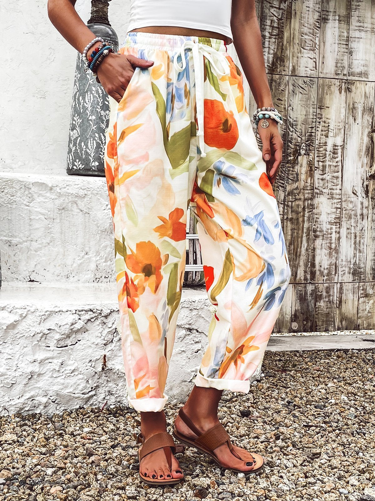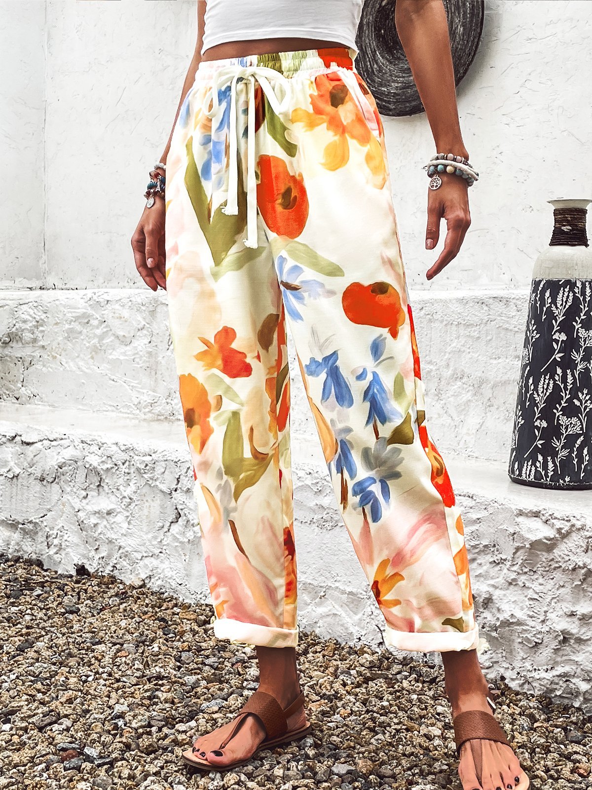 Casual Floral Fashion Long Pants